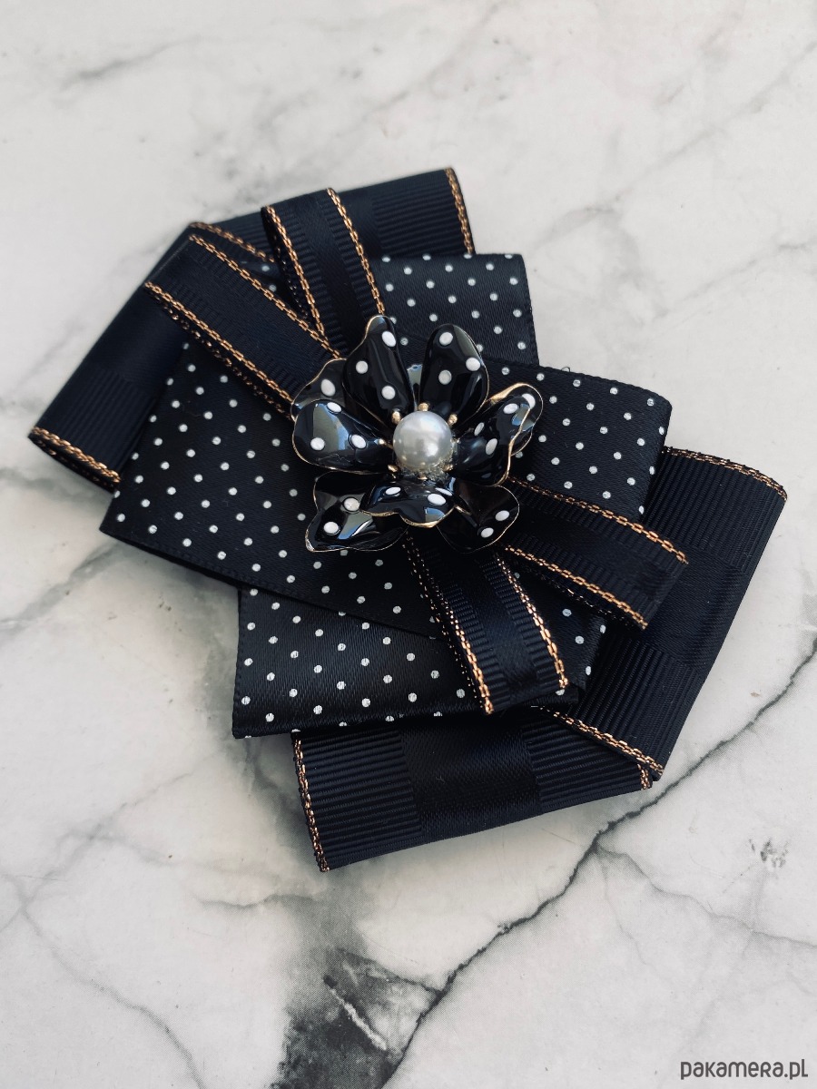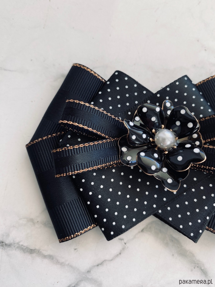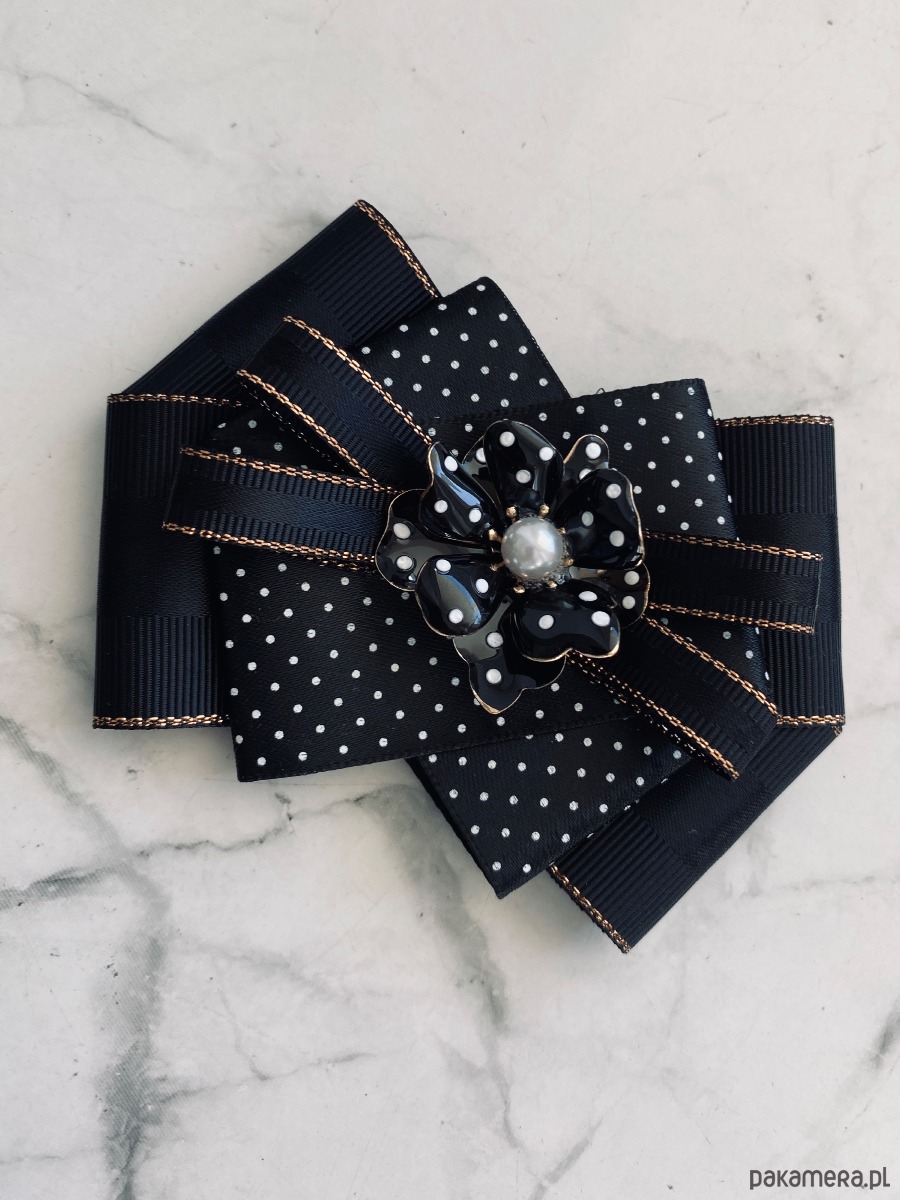 Brosza Black & White z efektowym kwiatem w kropeczki New