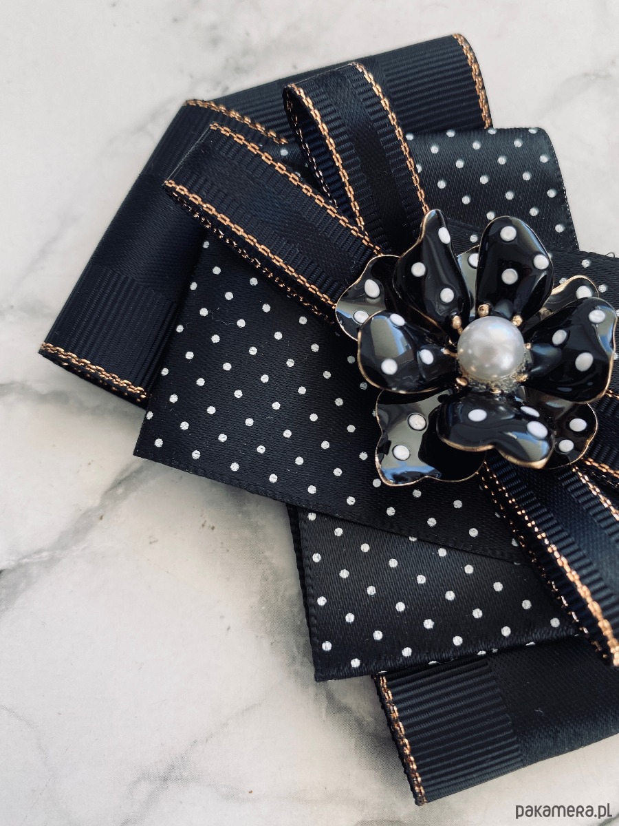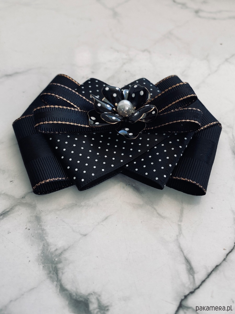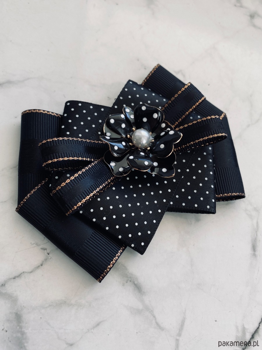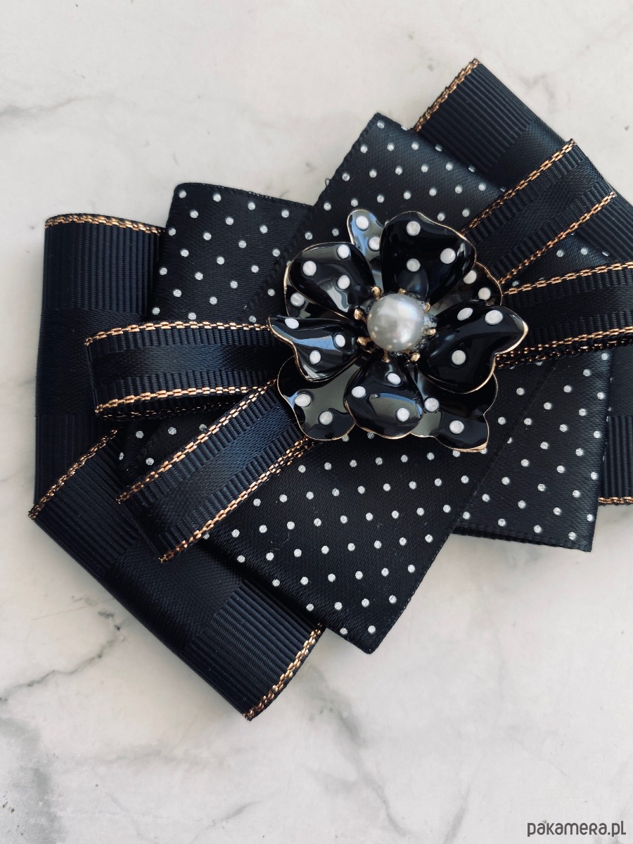 Brosza Black & White z efektowym kwiatem w kropeczki New