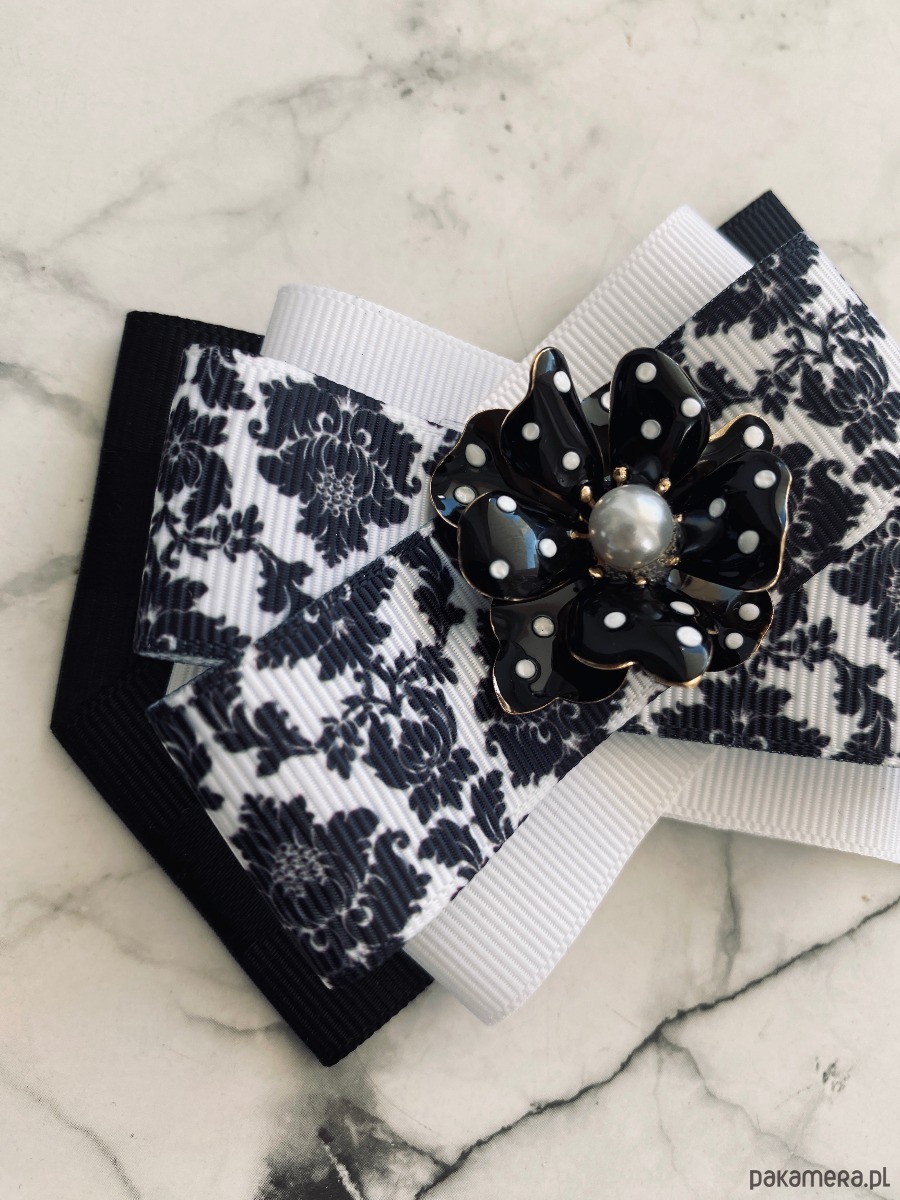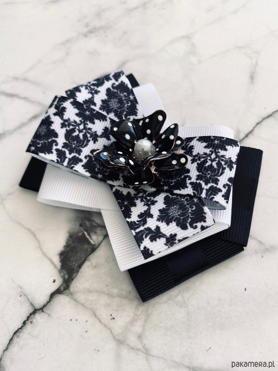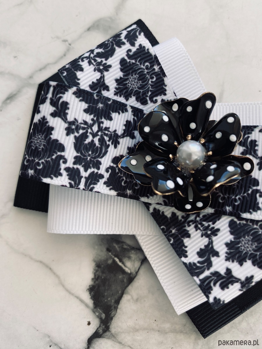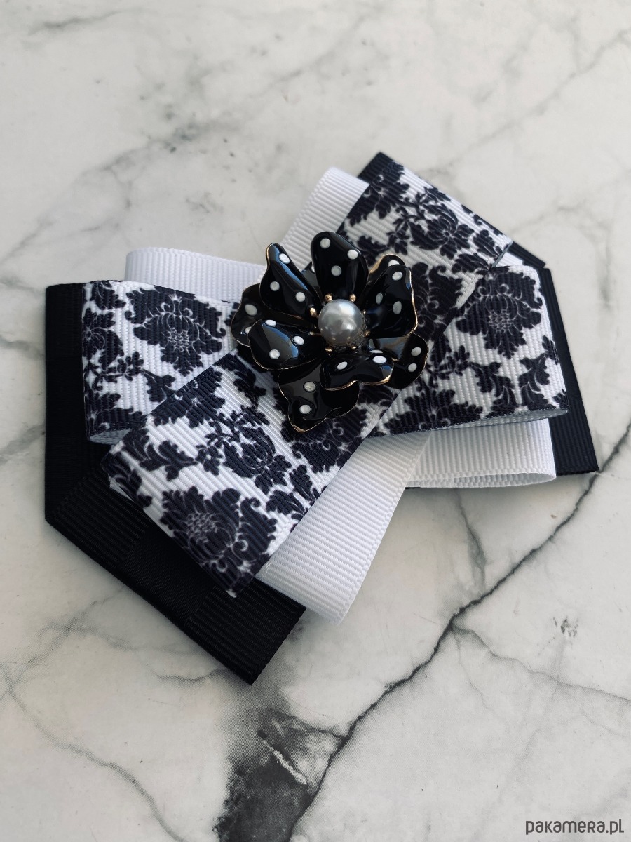 Brosza Black & White z efektowym kwiatem w kropeczki New