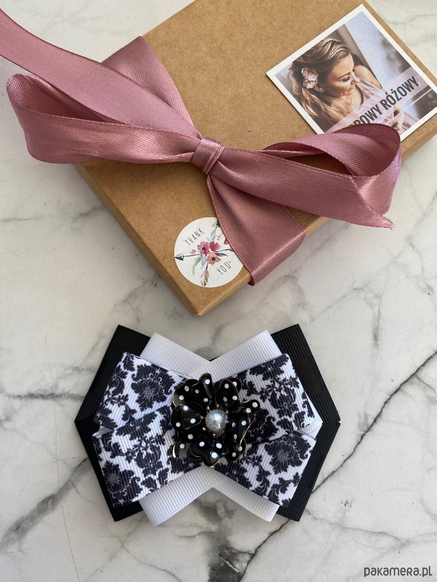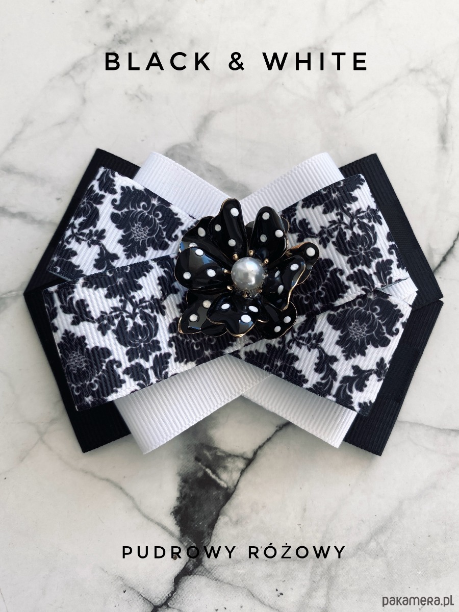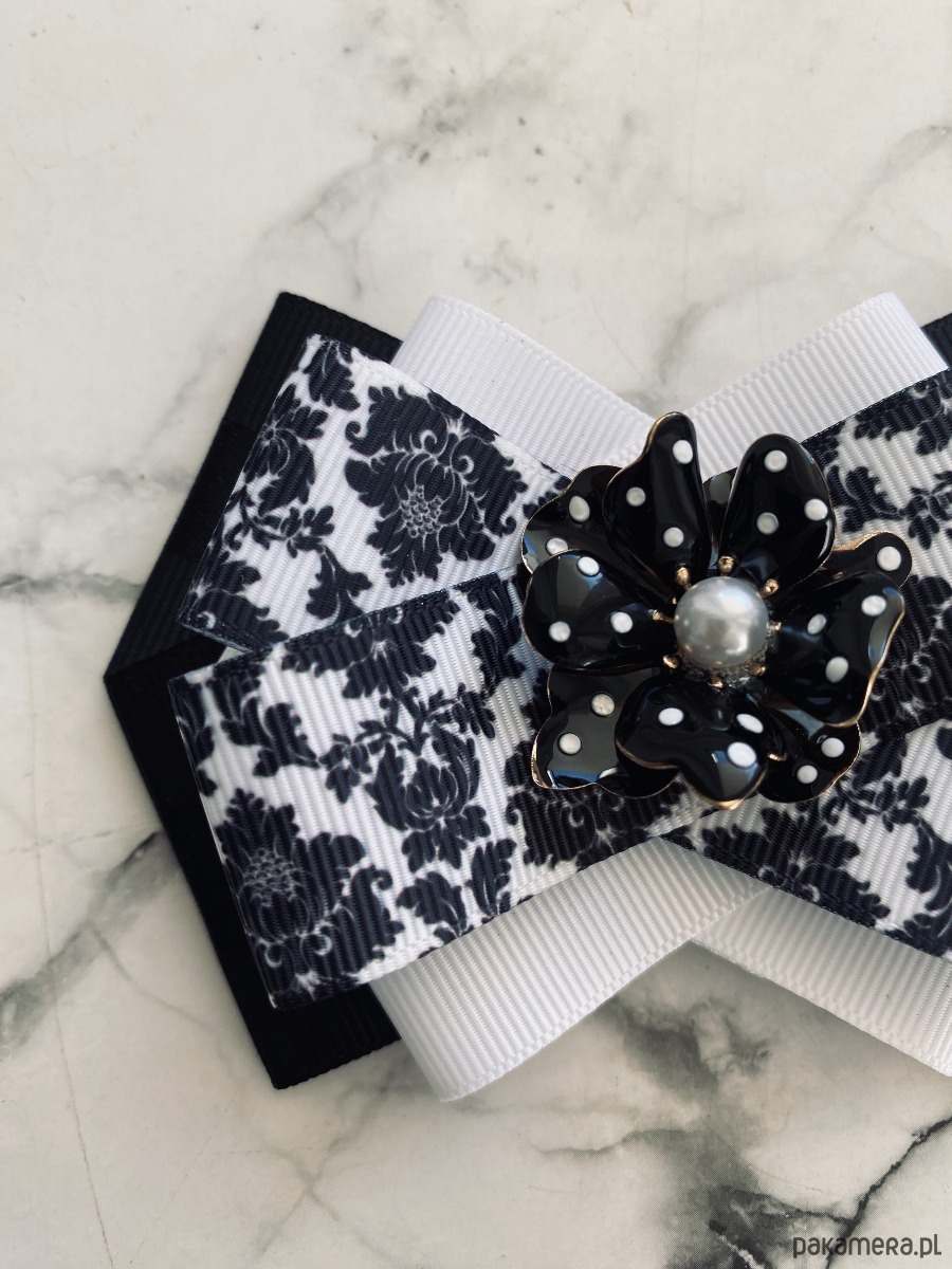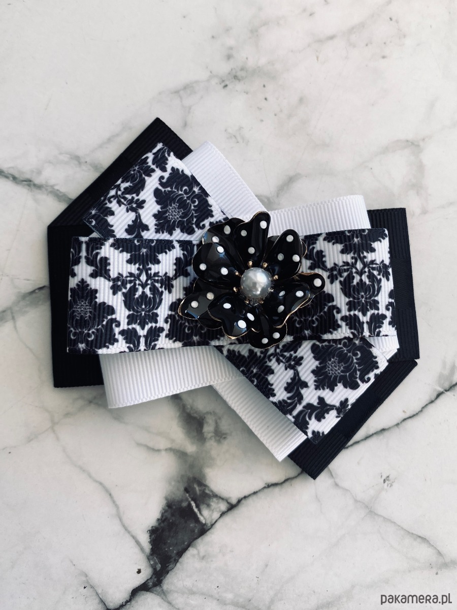 Brosza Black & White z efektowym kwiatem w kropeczki New
