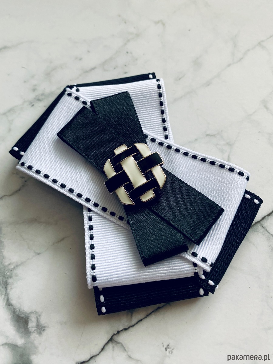 Brosza w kolorze czerni i złamanej bieli / śmietanki.