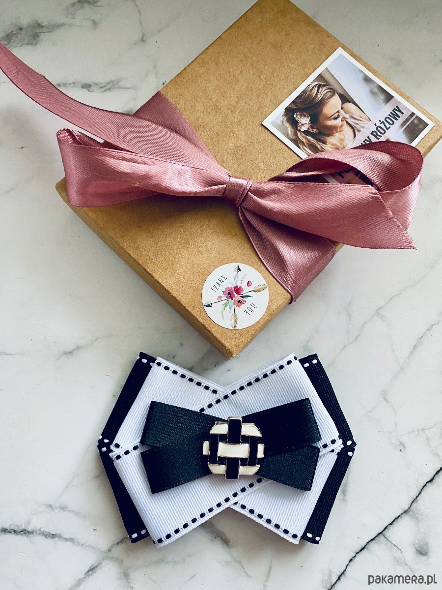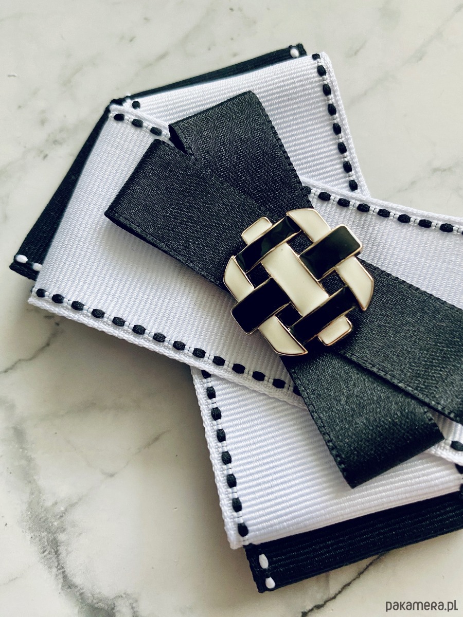 Broszka wykonana z wysokiej jakości taśm i dodatków.