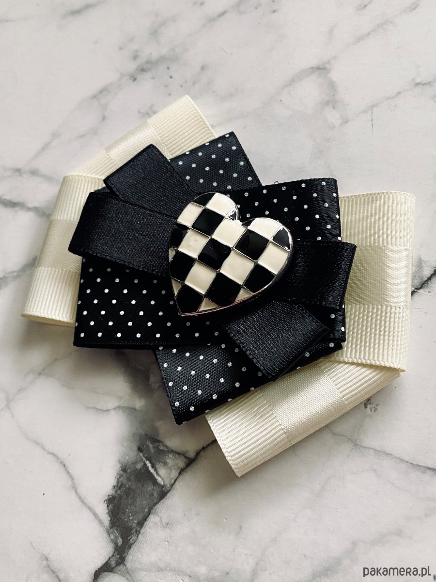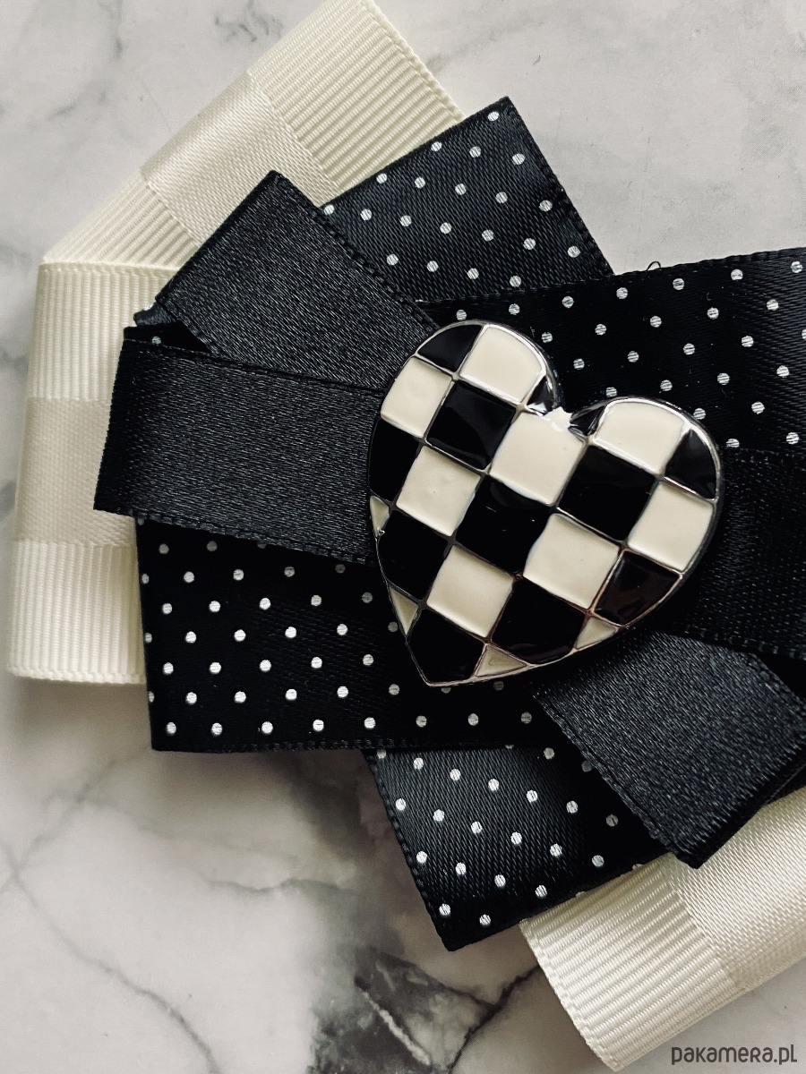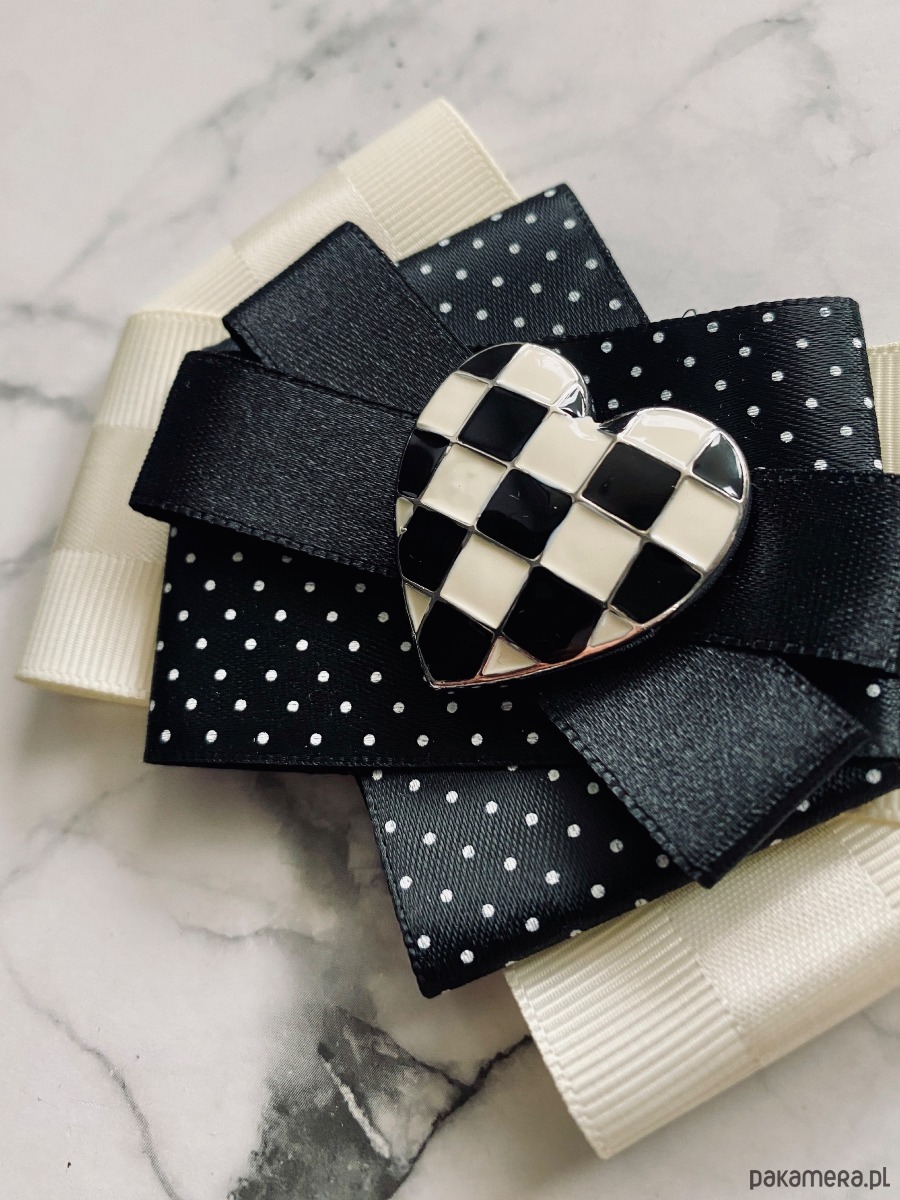 Brosza Black & White z sercem z szachownicy NEW