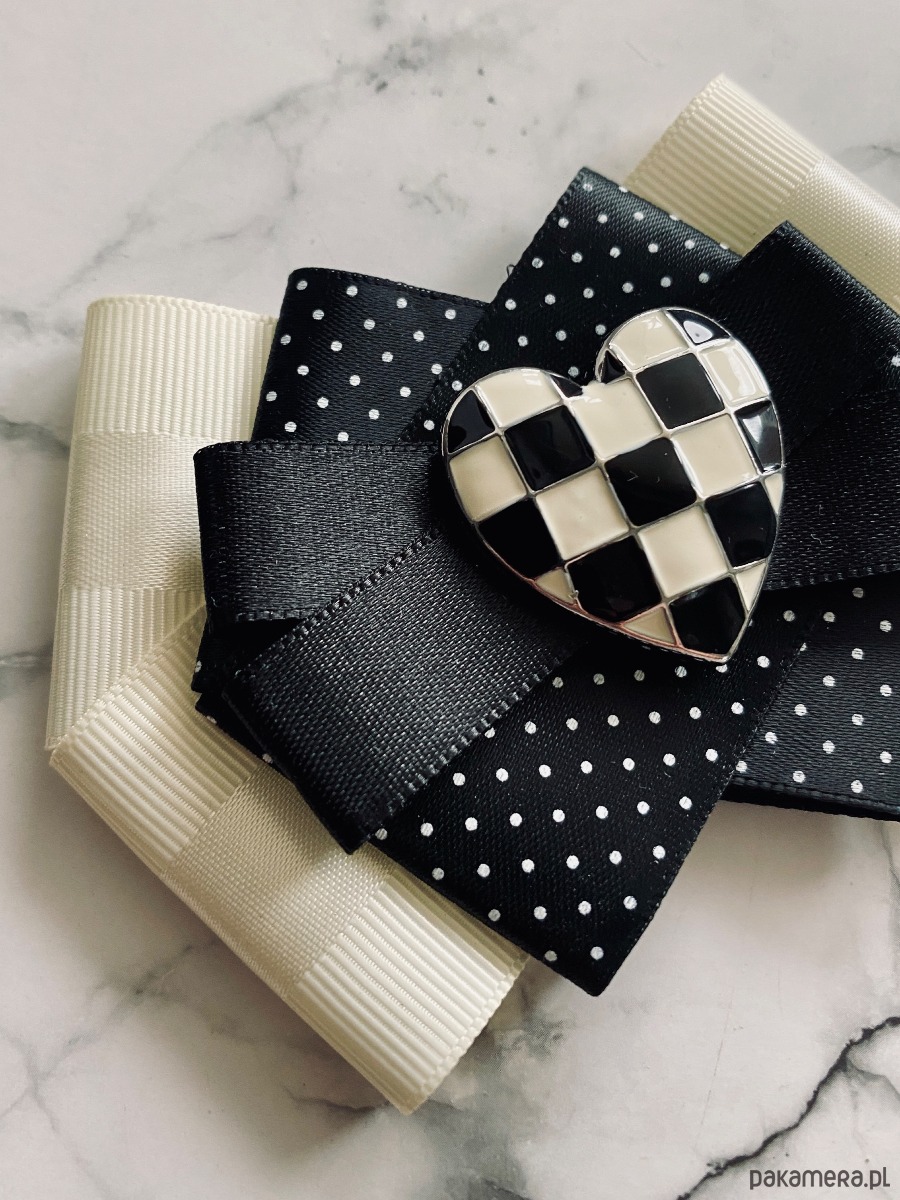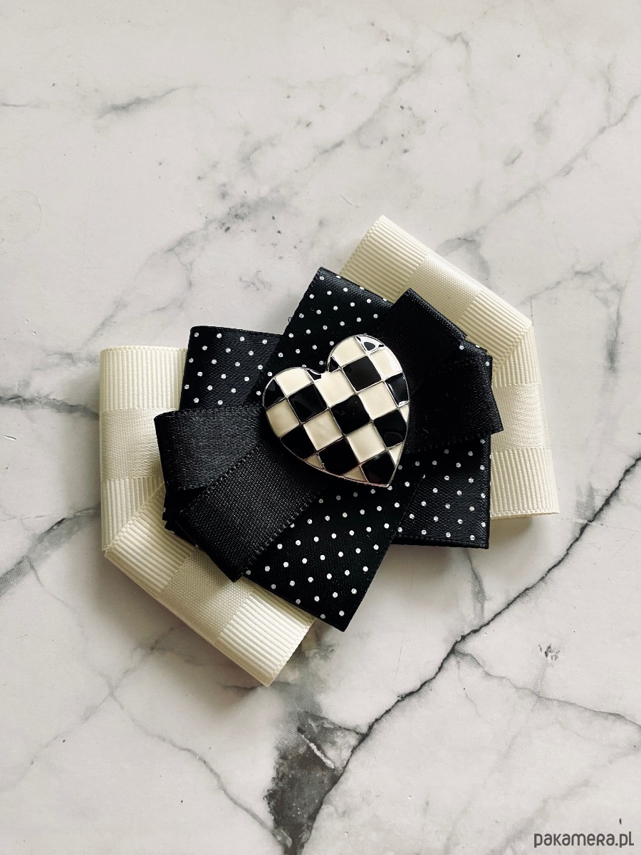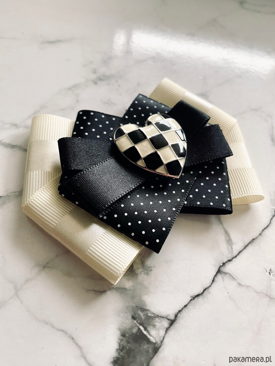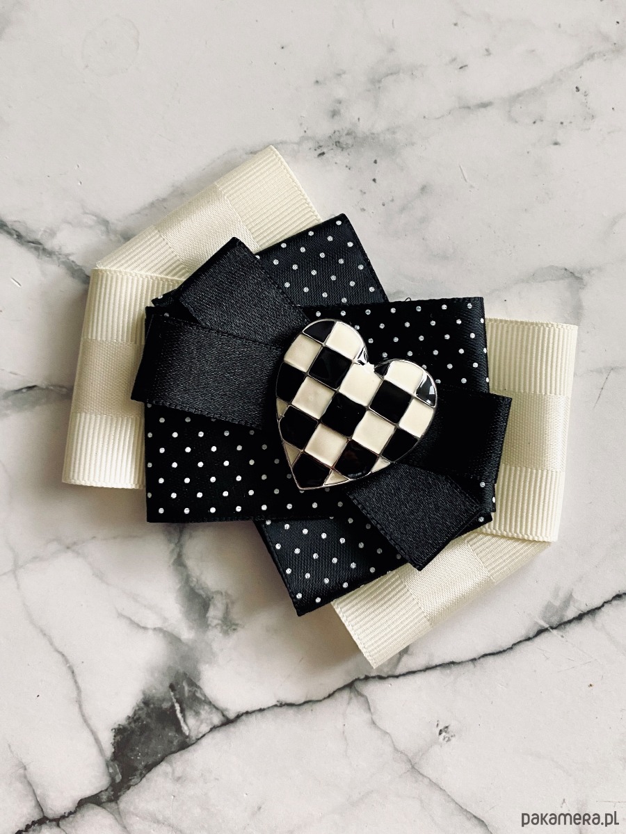 Brosza Black & White z sercem z szachownicy NEW