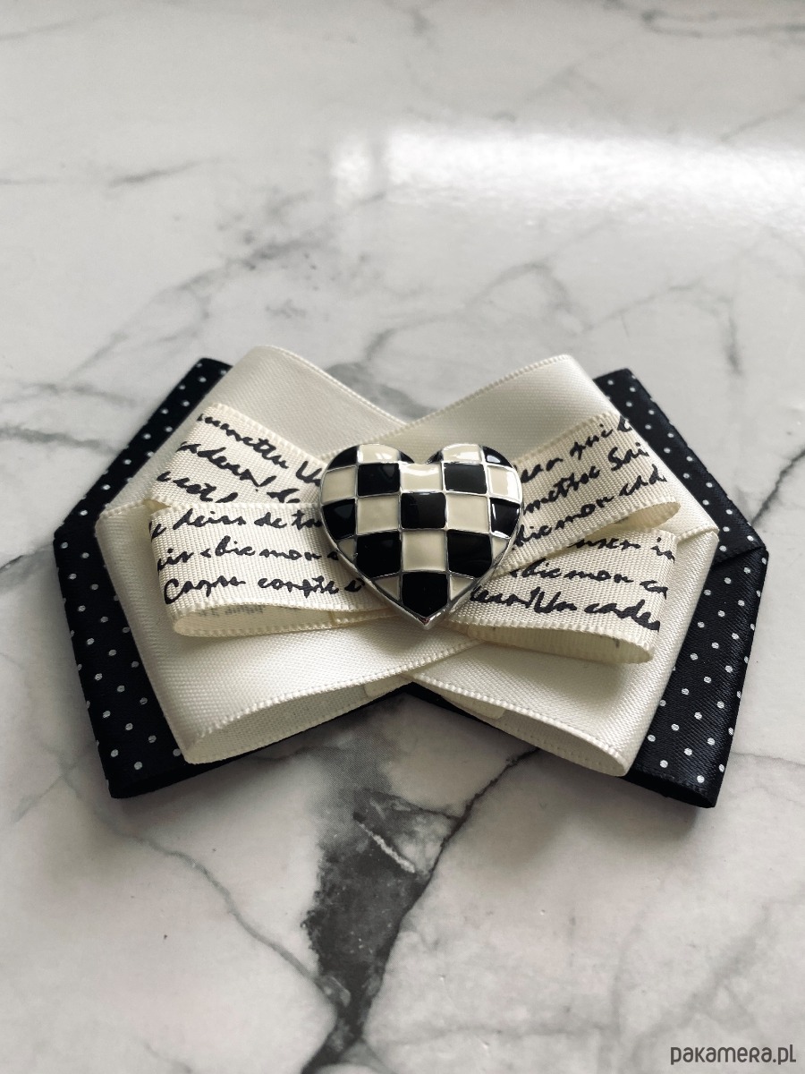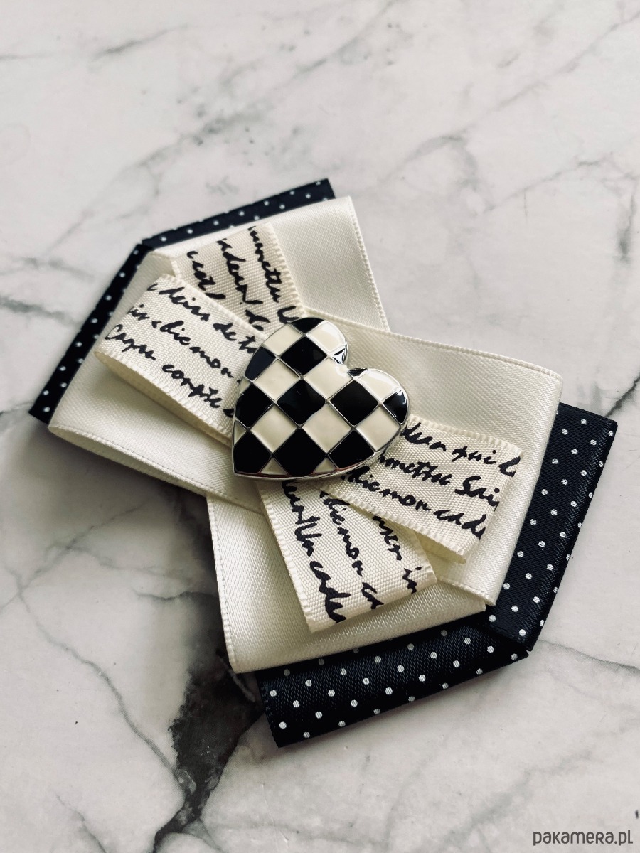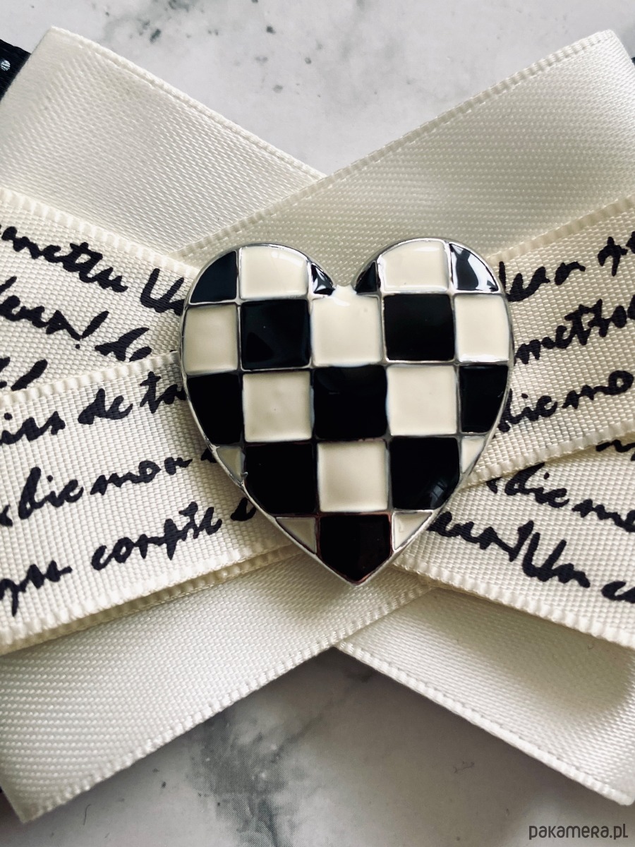 Brosza Black & White z sercem z szachownicy NEW