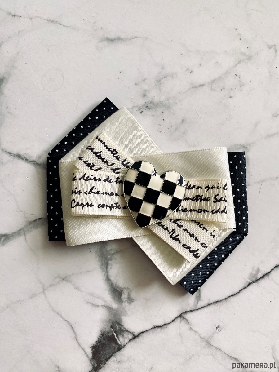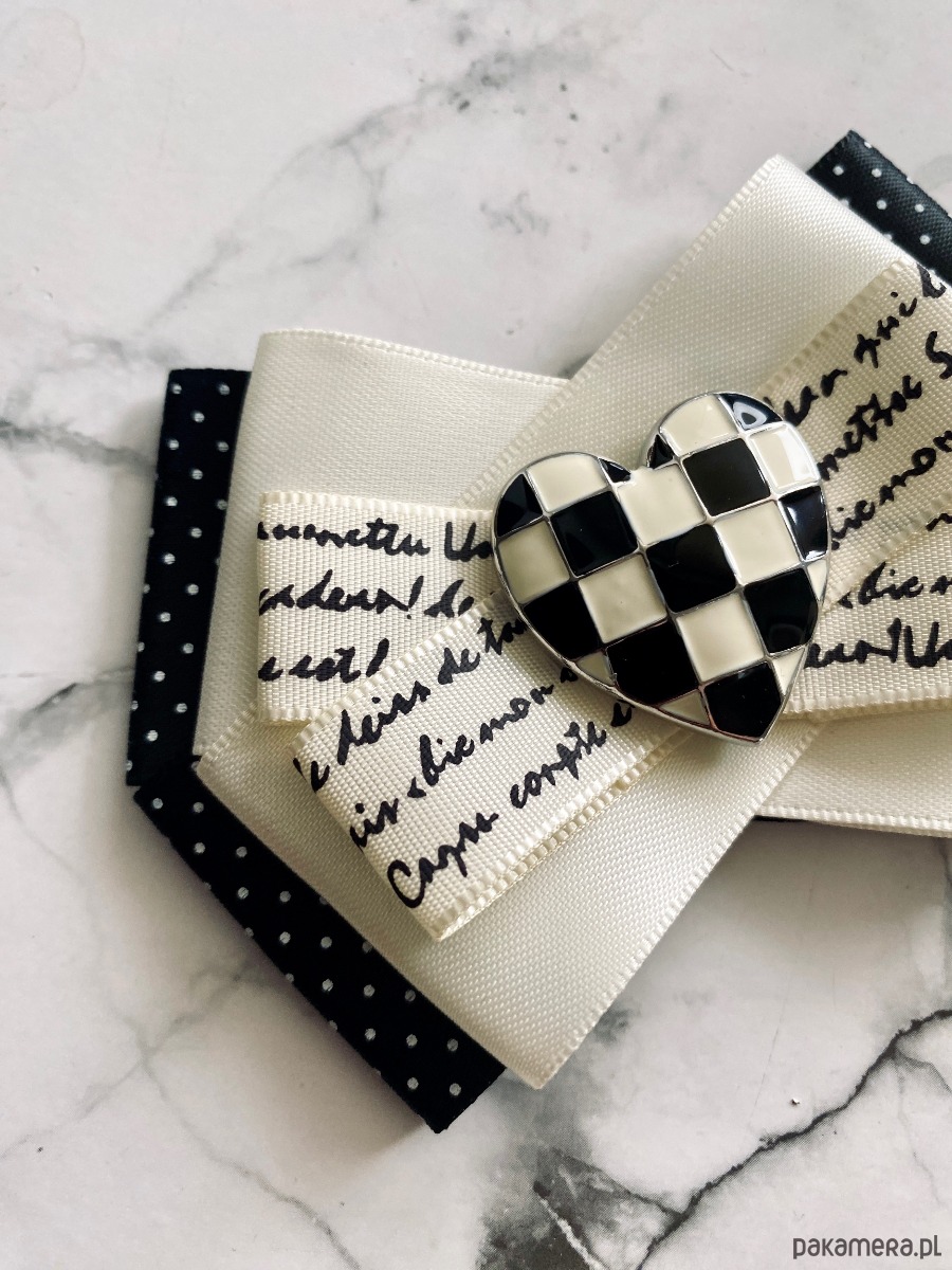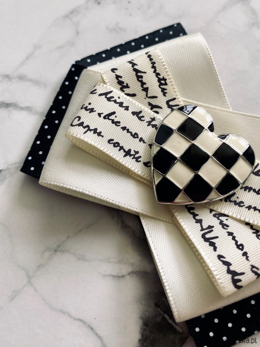 Brosza Black & White z sercem z szachownicy NEW