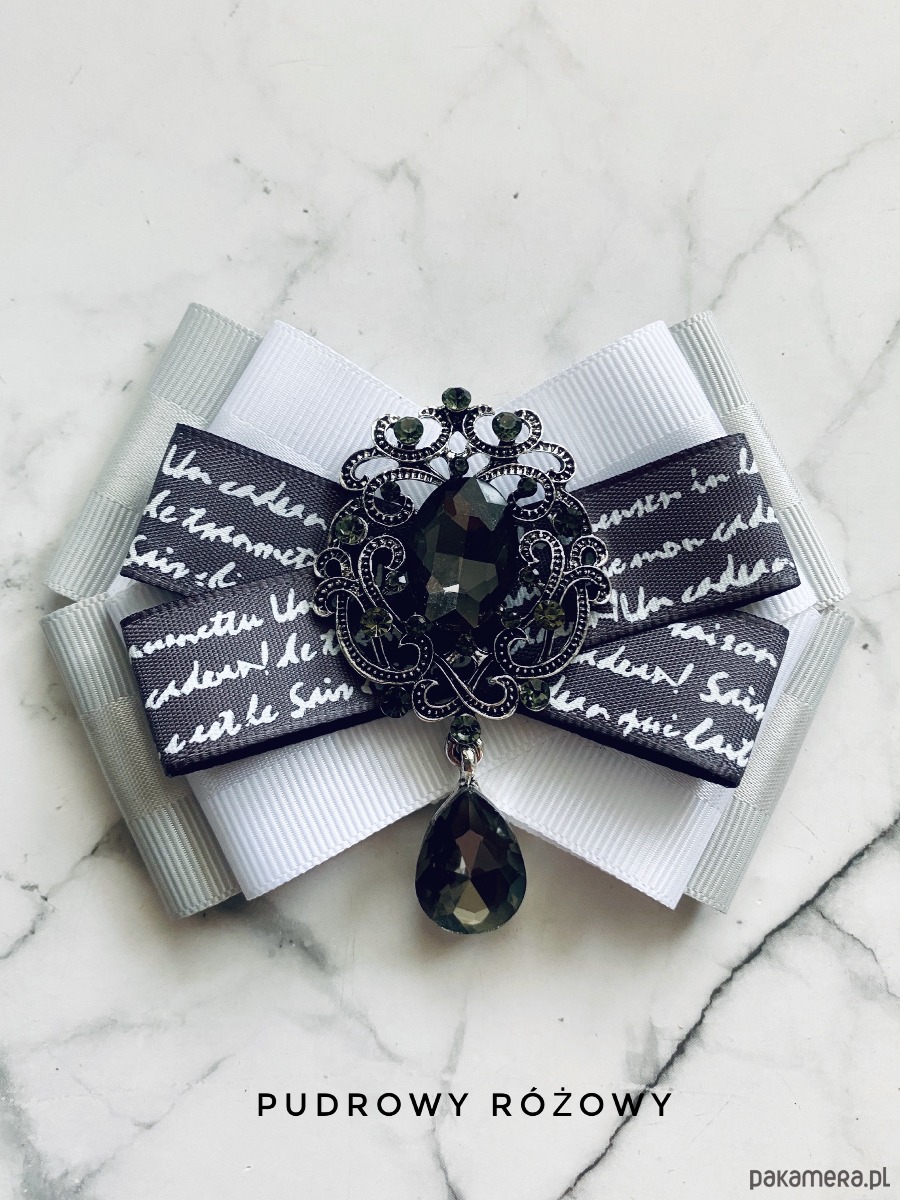 Brosza Black & White z szarą kryształową ozdobą NEW