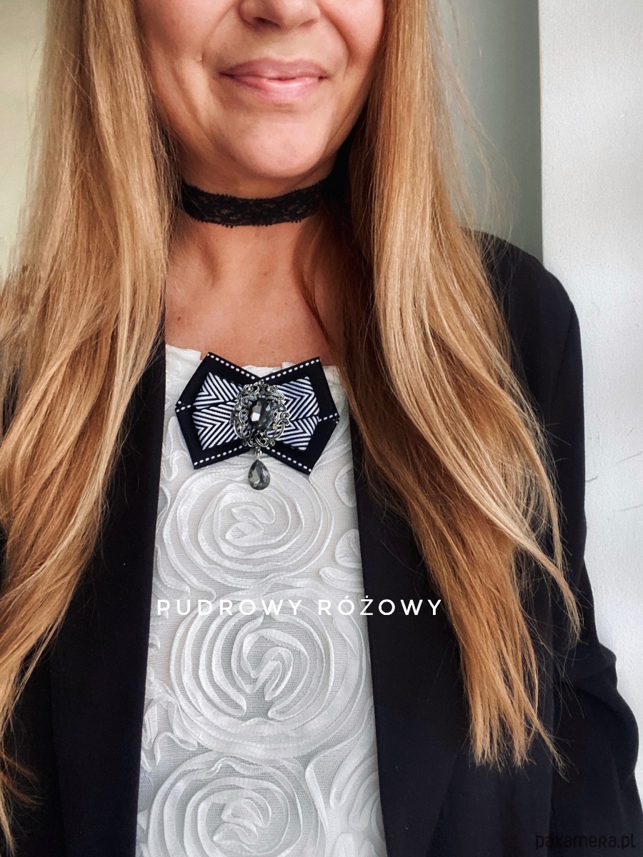 Broszka wykonana z wysokiej jakości taśm i dodatków.