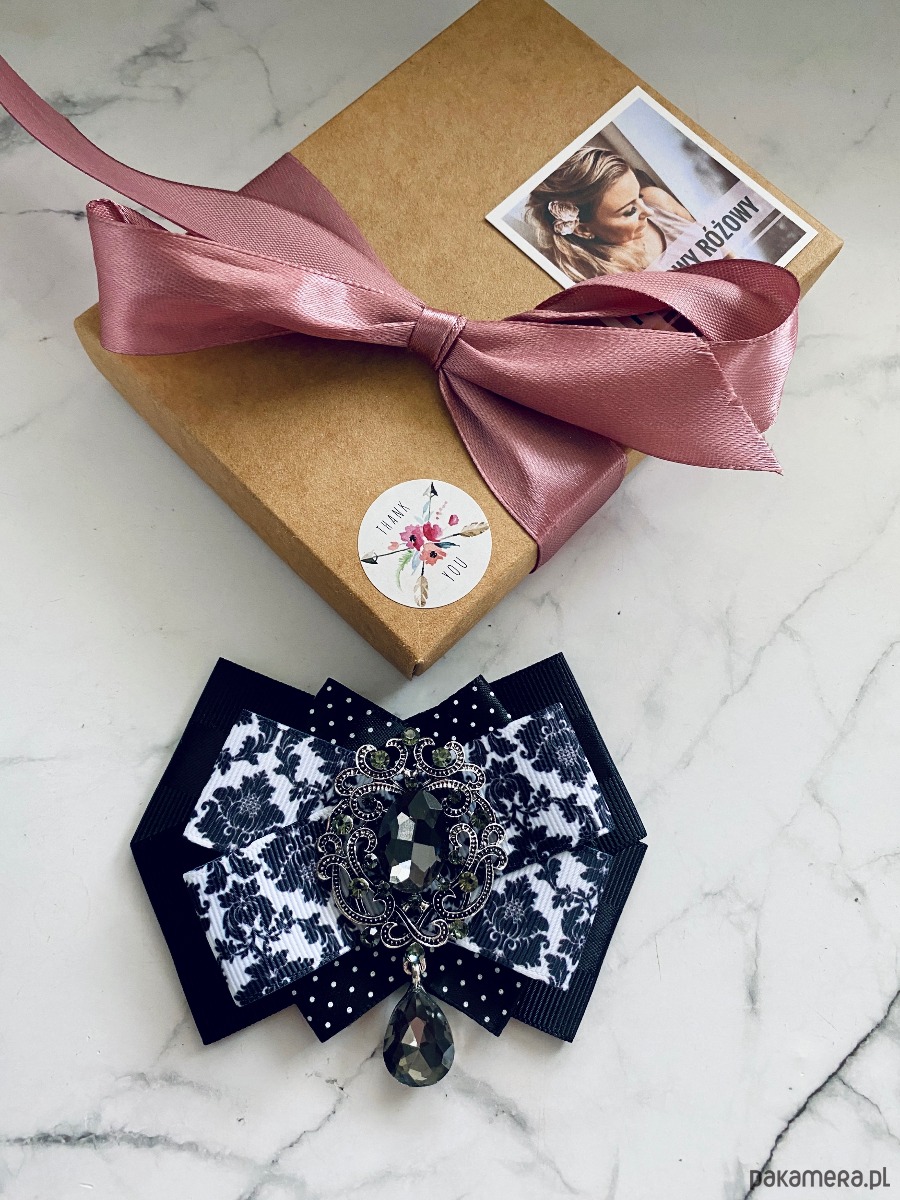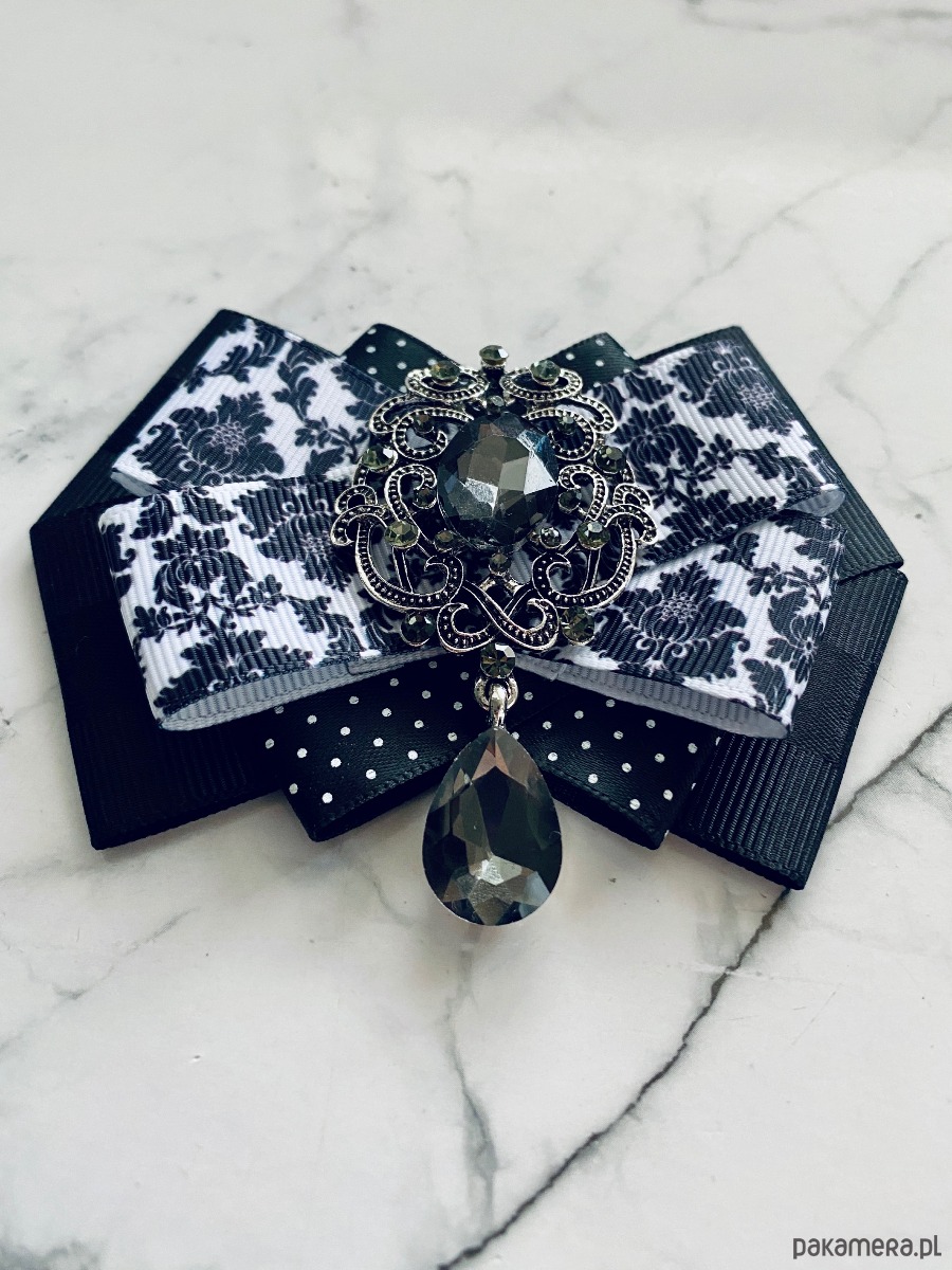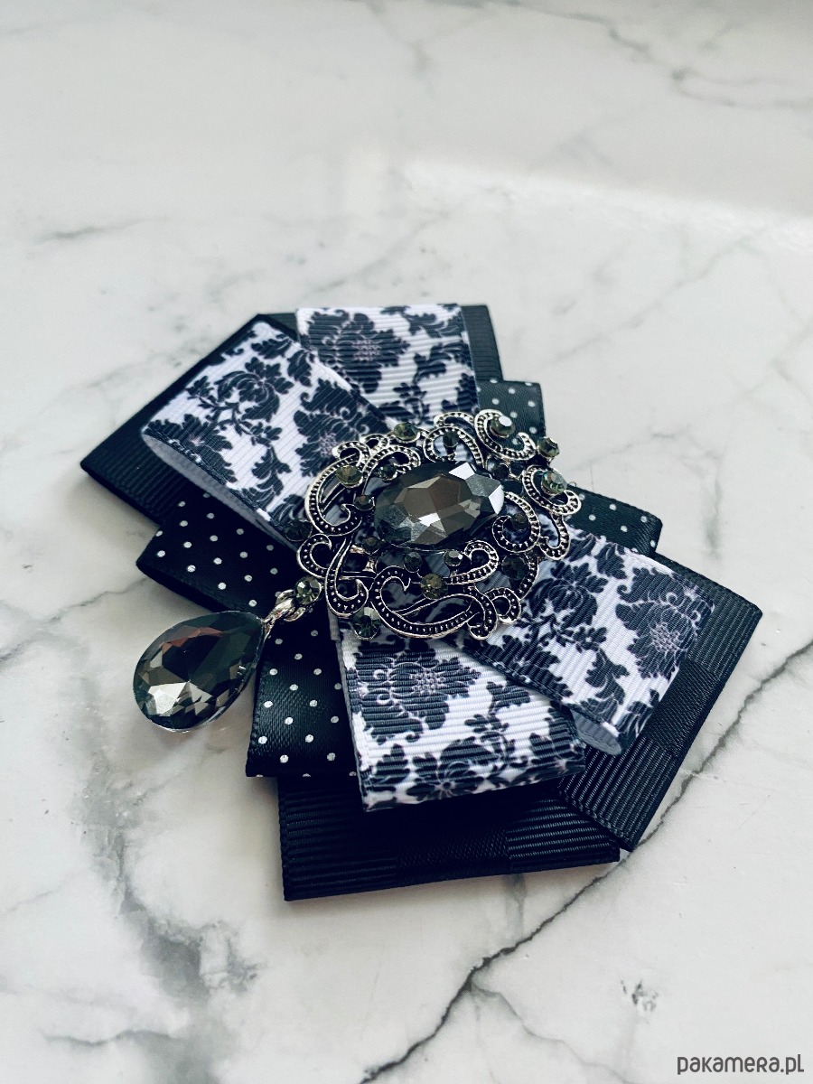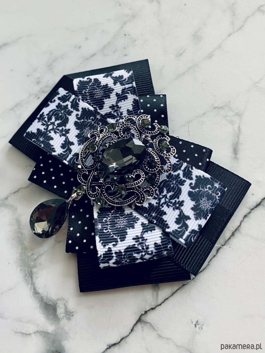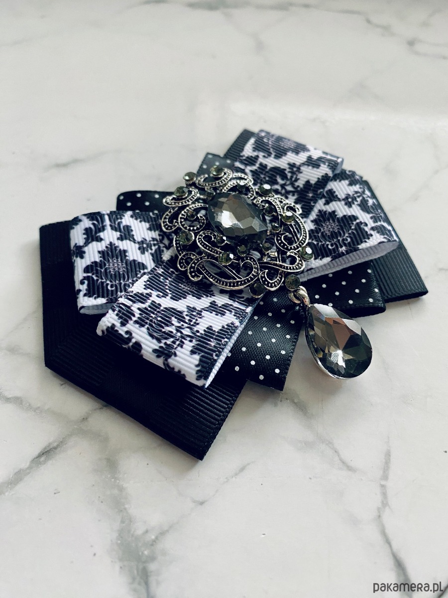 Broszka wykonana z wysokiej jakości taśm i dodatków.