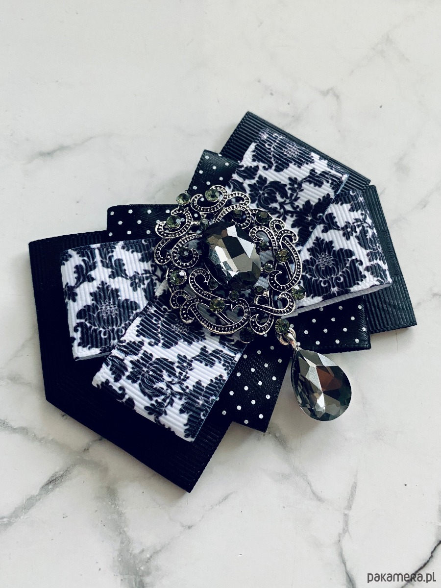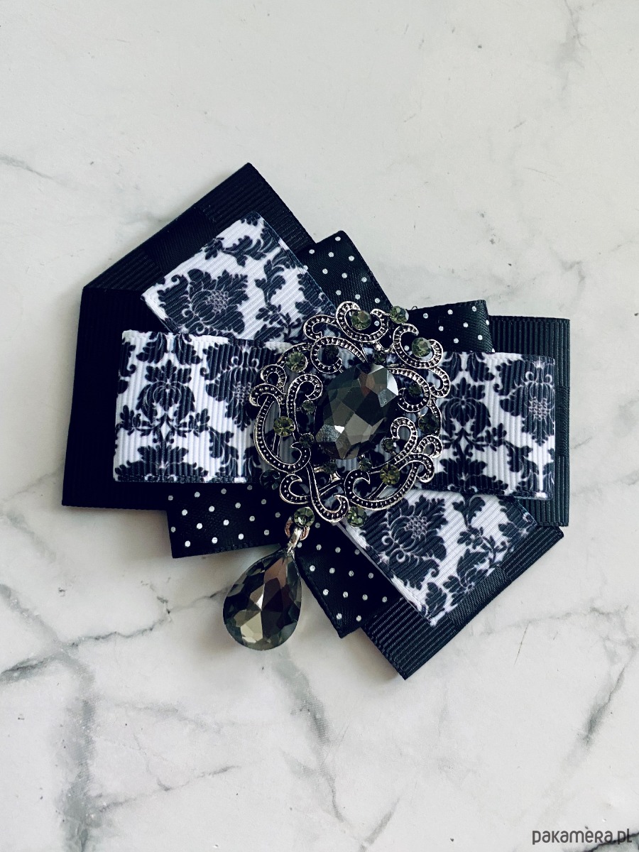 Brosza Black & White z szarą kryształową ozdobą NEW