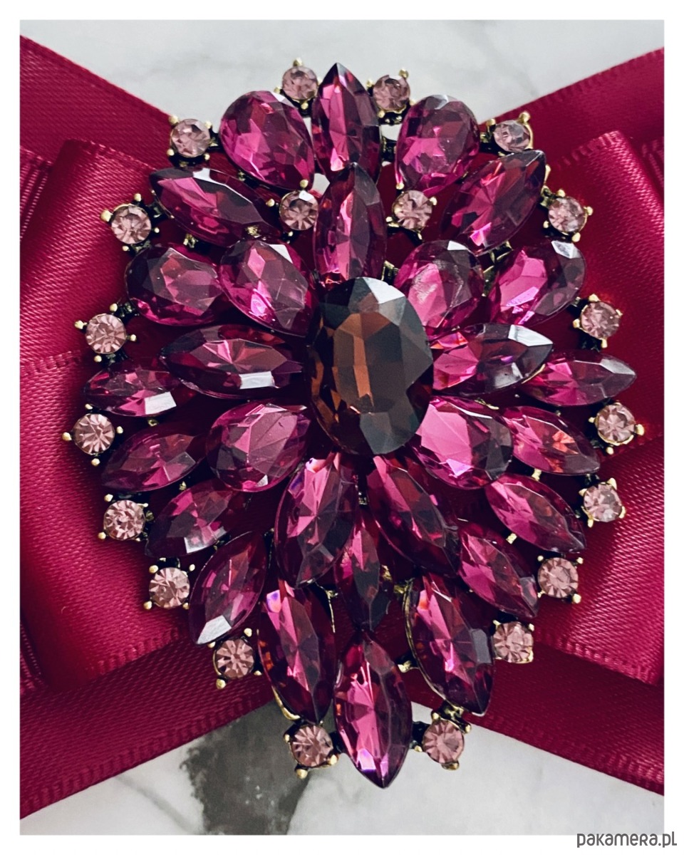 Piękna duża dekoracyjna ozdoba na środku, wykonana z cudnie szlifowanych kryształków pięknie odbijających światło. Ozdoby w kolorze burgund!