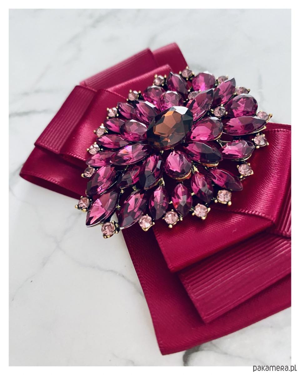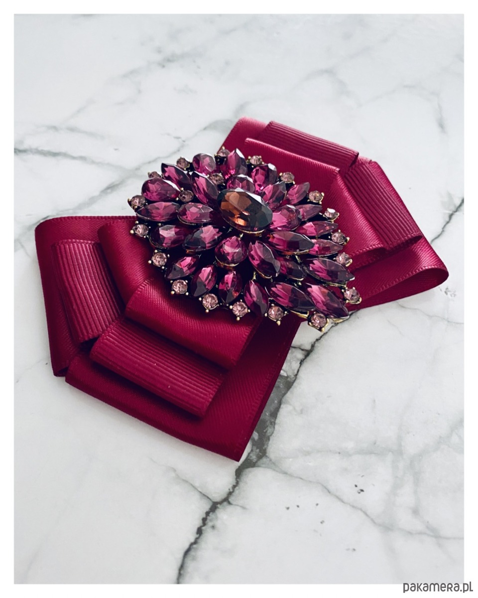 Broszka wykonana z wysokiej jakości taśm i dodatków.