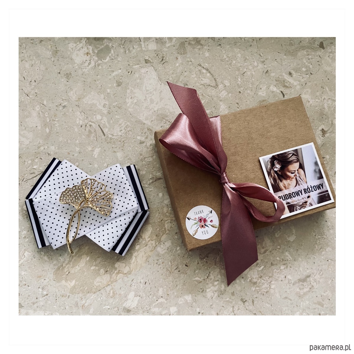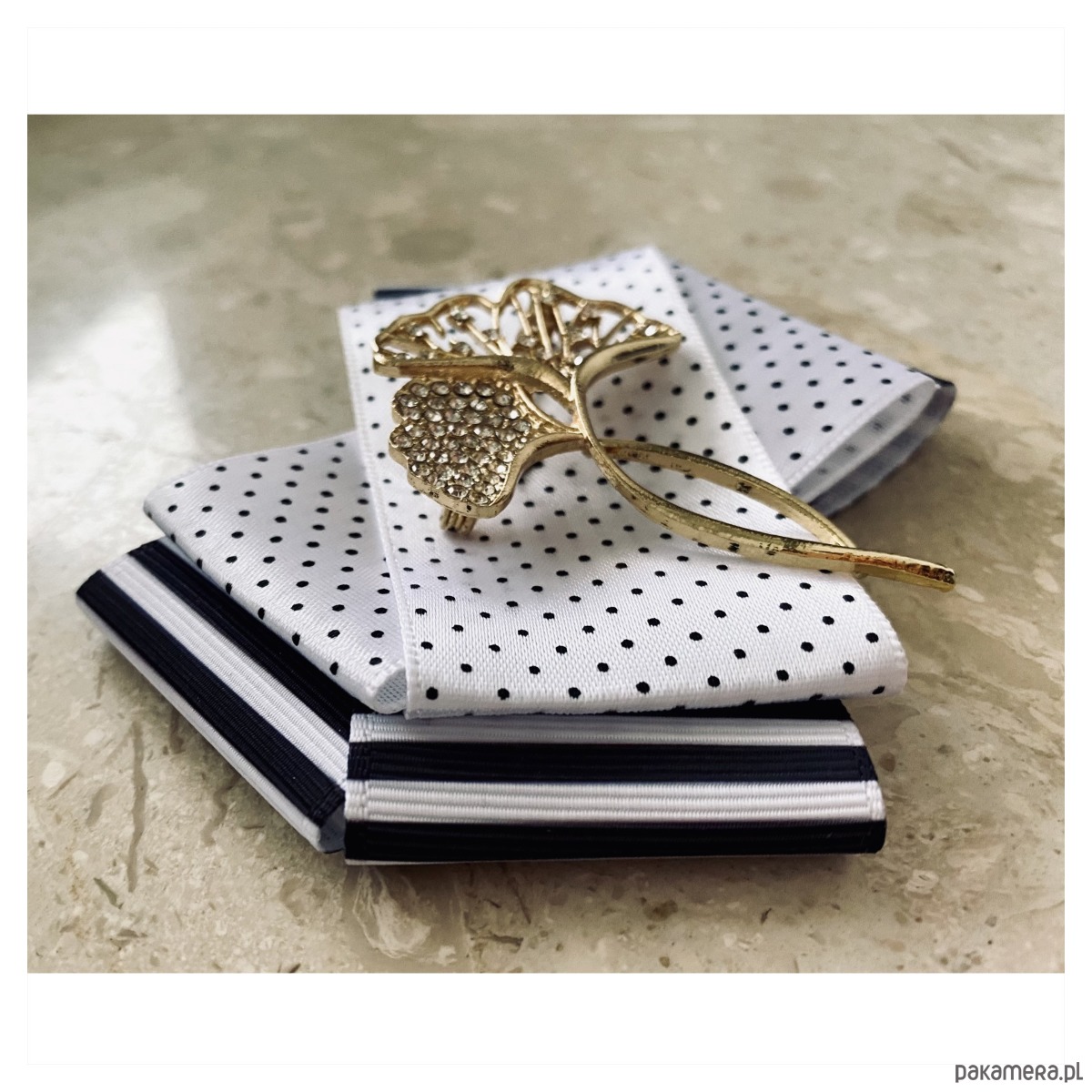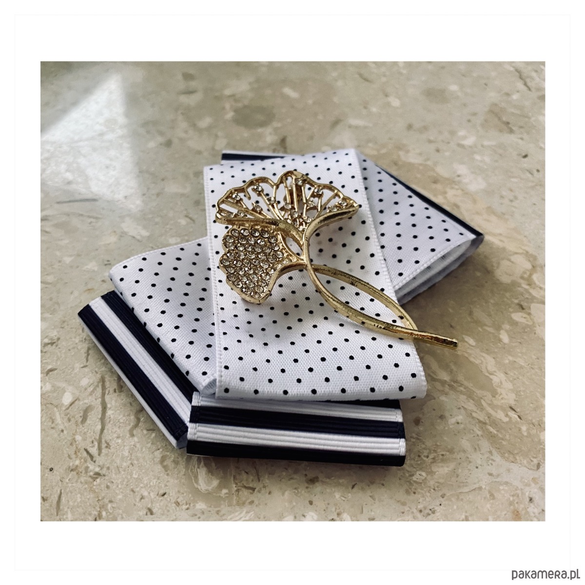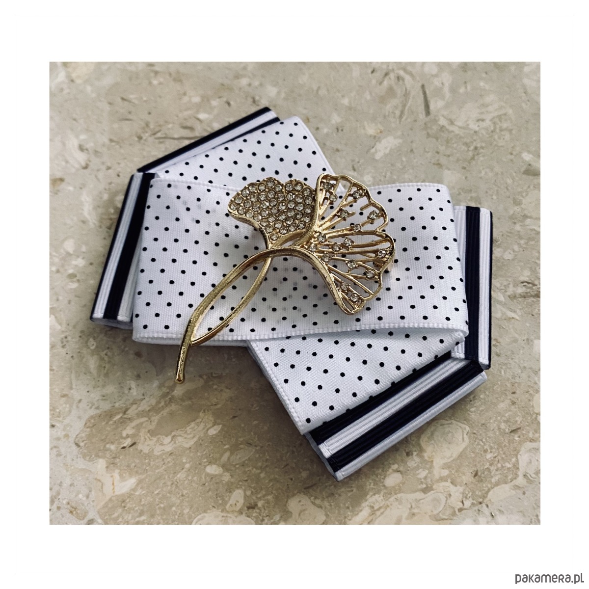 Broszka wykonana z wysokiej jakości taśm i dodatków.