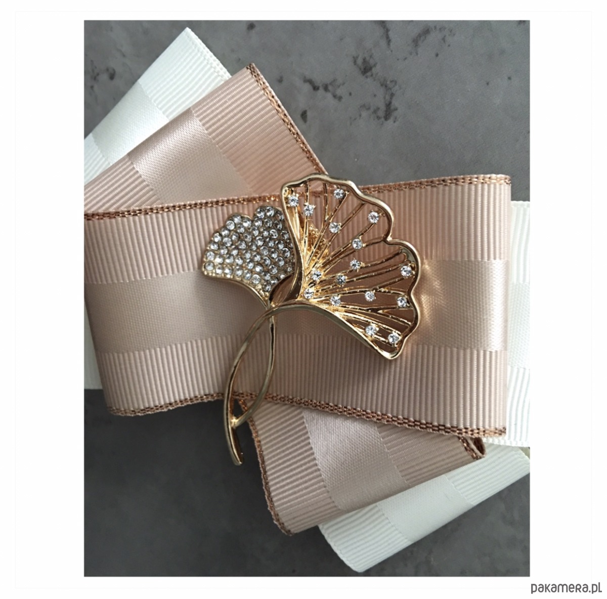 Broszka wykonana z wysokiej jakości taśm i dodatków.