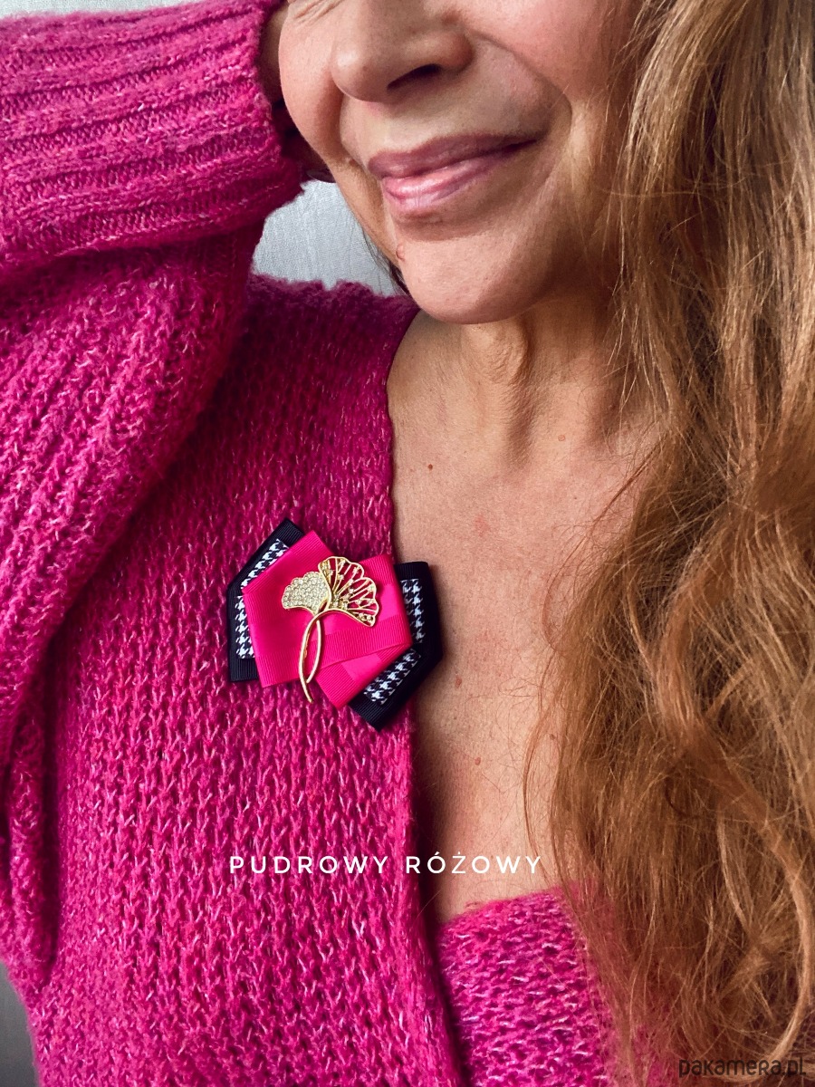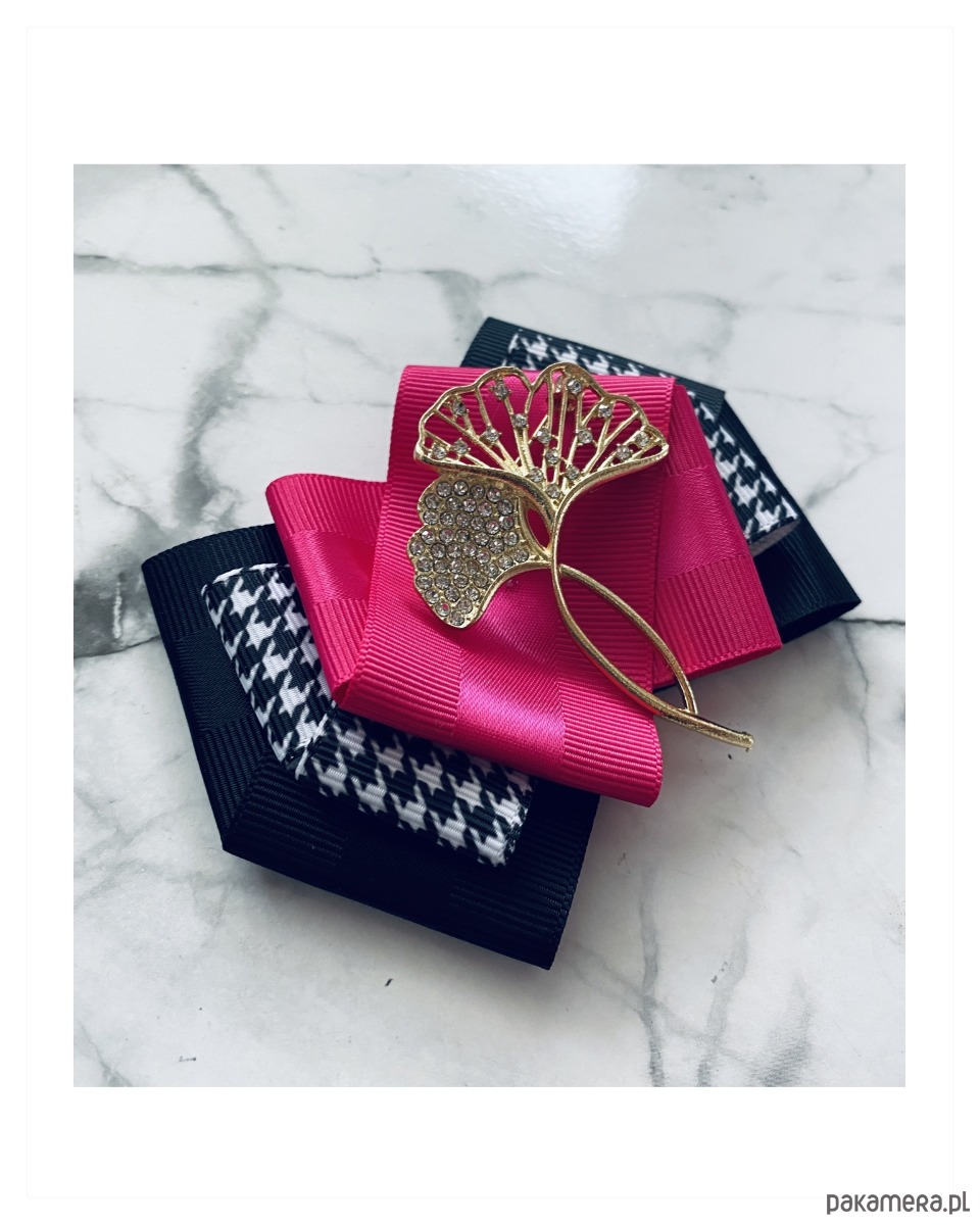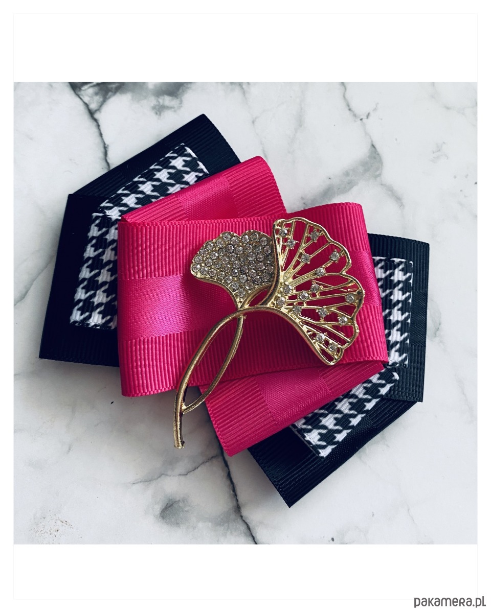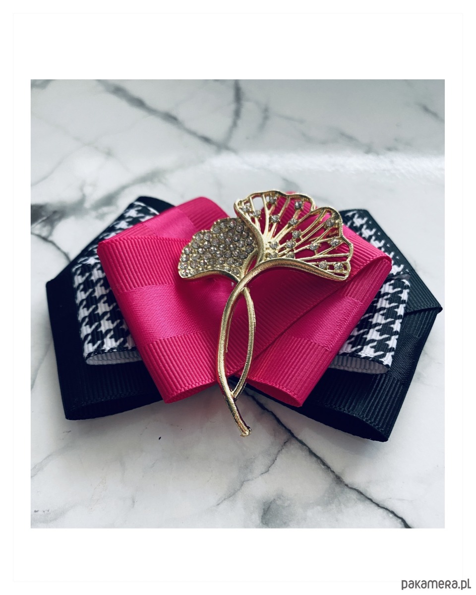 Brosza w kolorze czerni, bieli i fuksji.