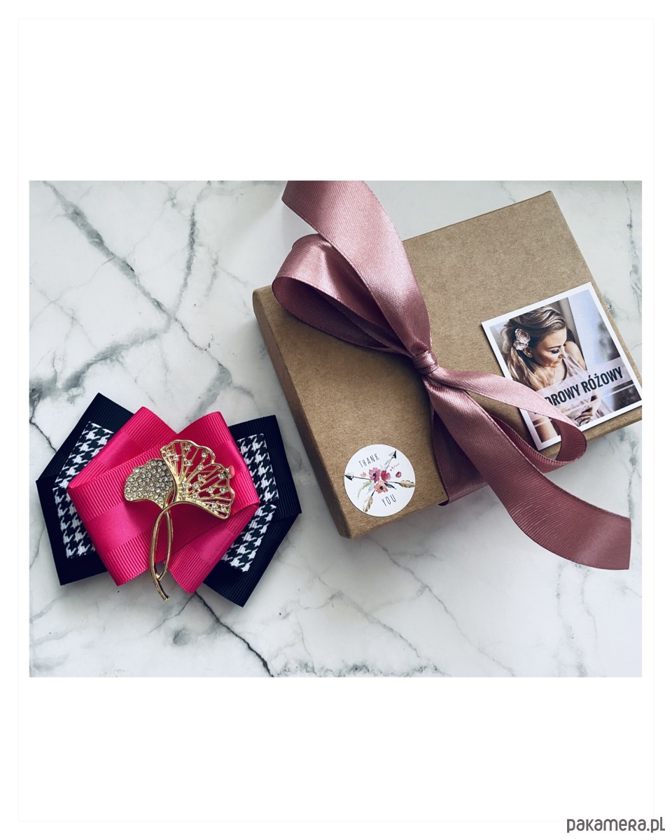 Broszka wykonana z wysokiej jakości taśm i dodatków.