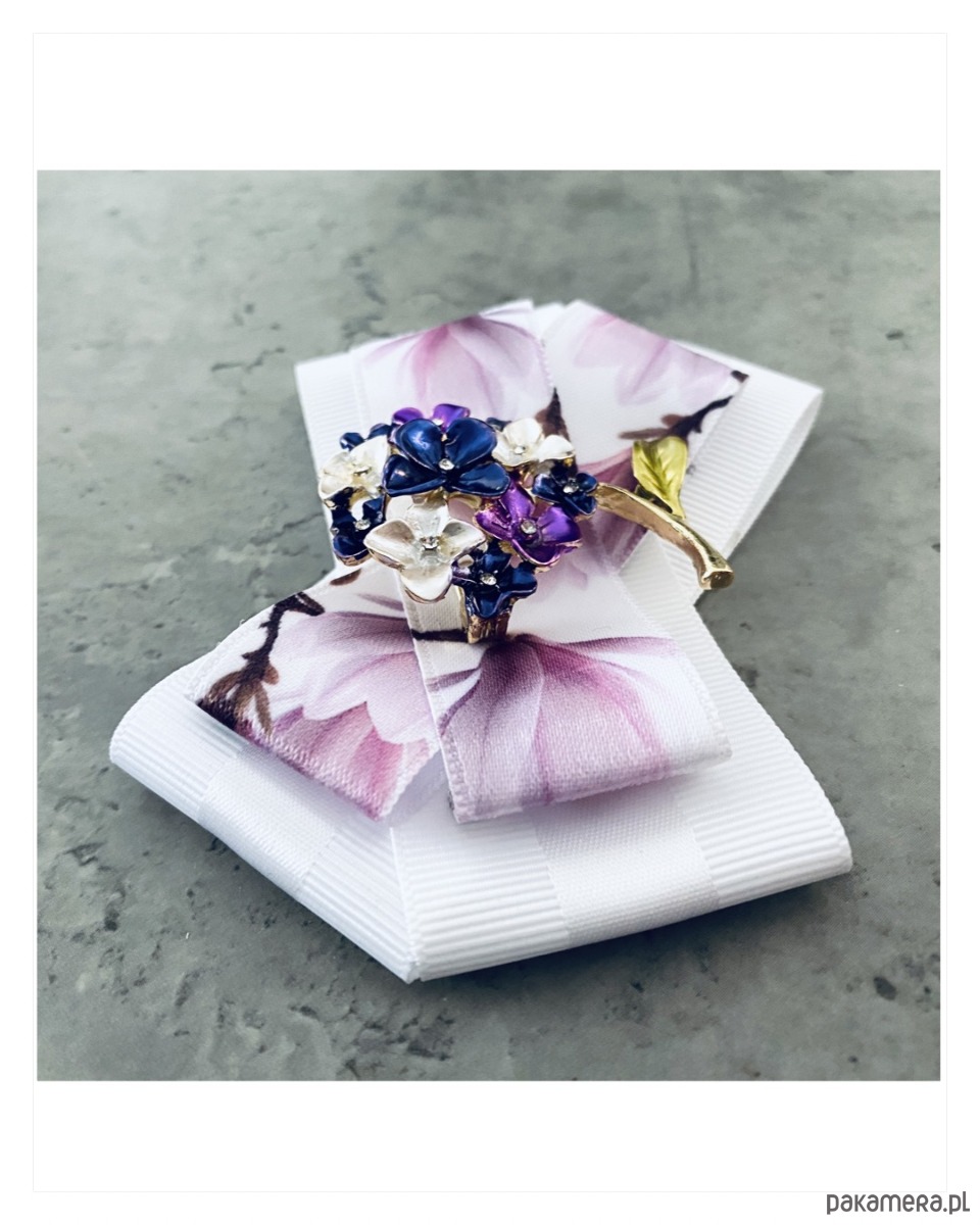 Broszka wykonana z wysokiej jakości taśm i dodatków.