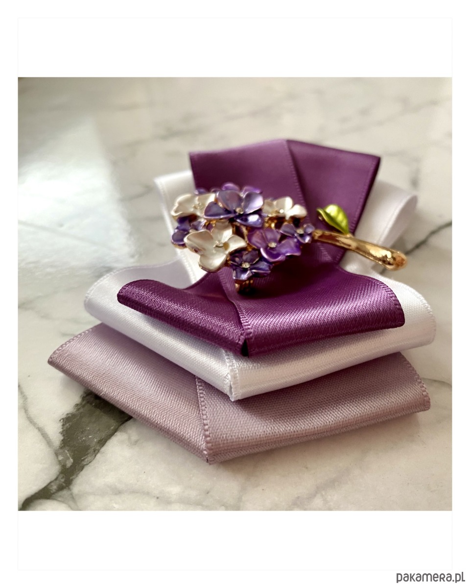Broszka wykonana z wysokiej jakości taśm i dodatków.