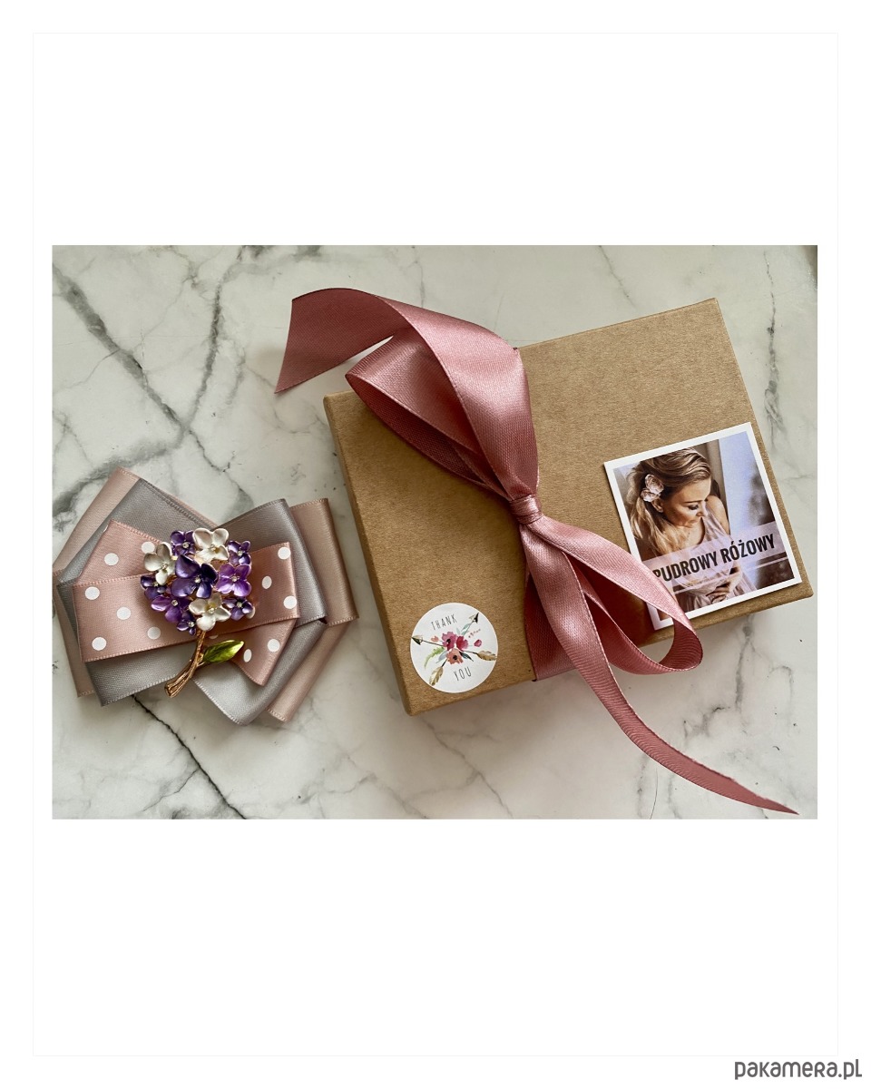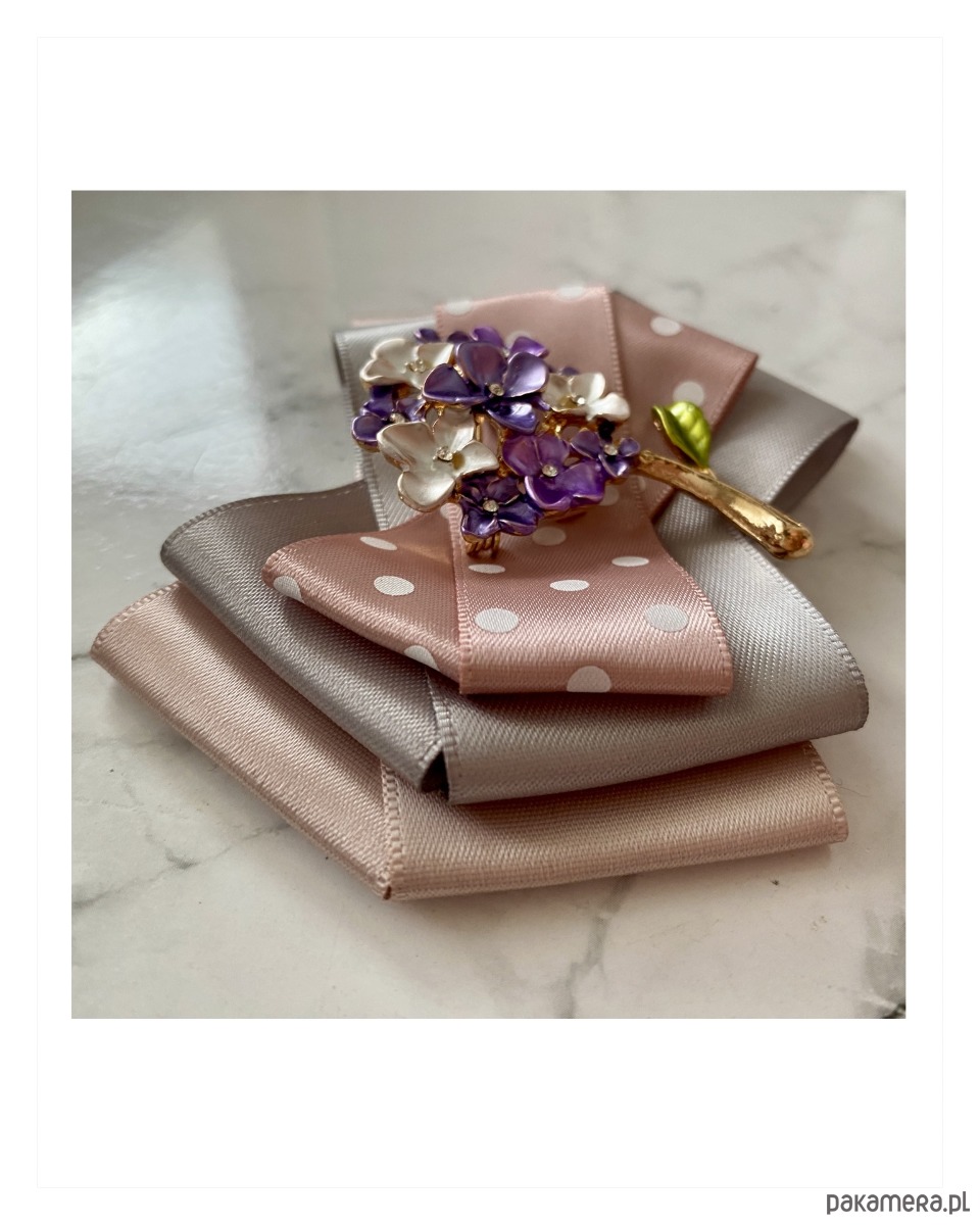 Broszka wykonana z wysokiej jakości taśm i dodatków.