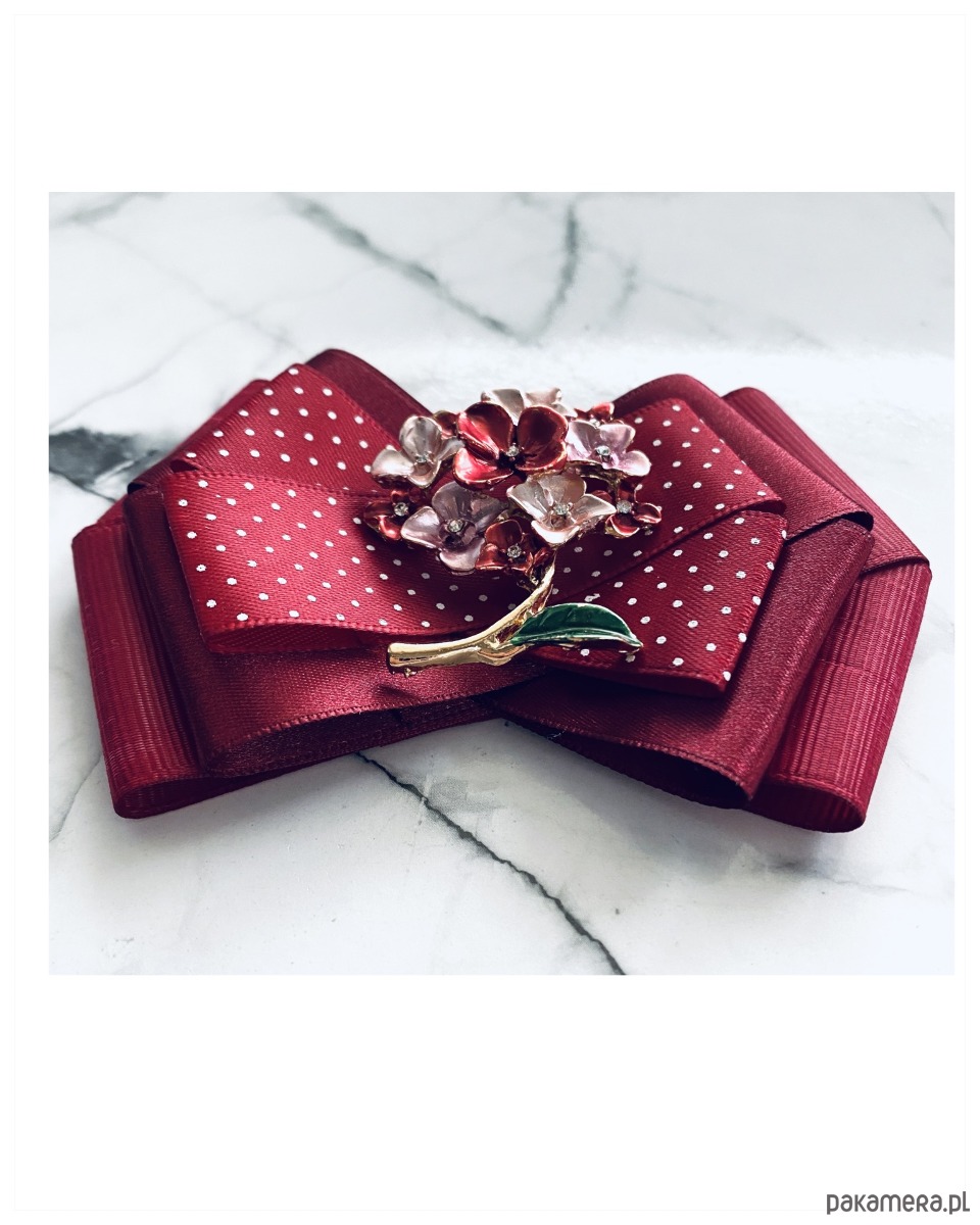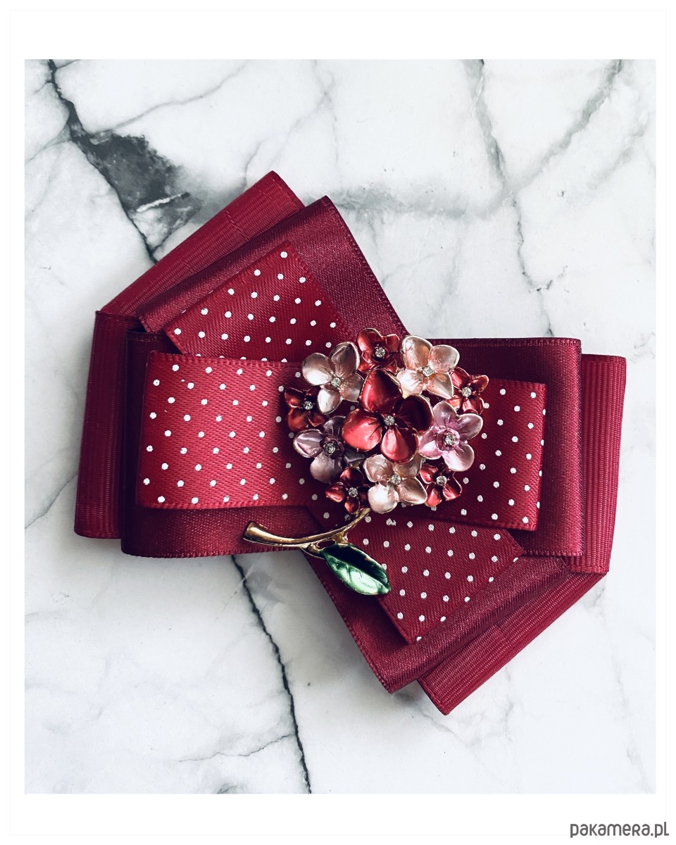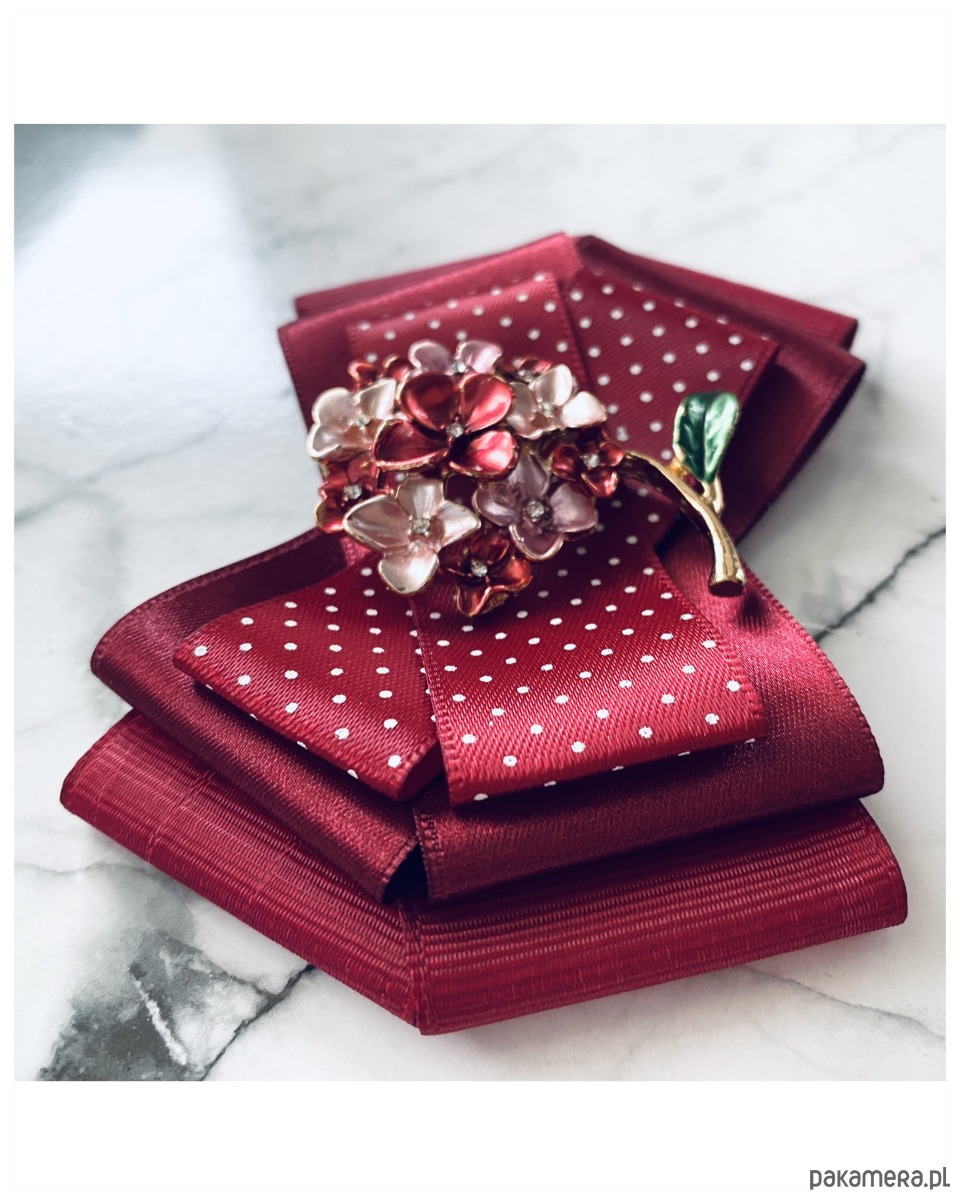 Broszka wykonana z wysokiej jakości taśm i dodatków.