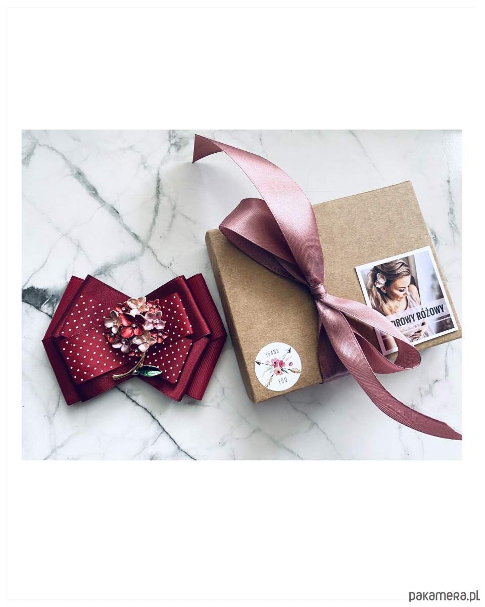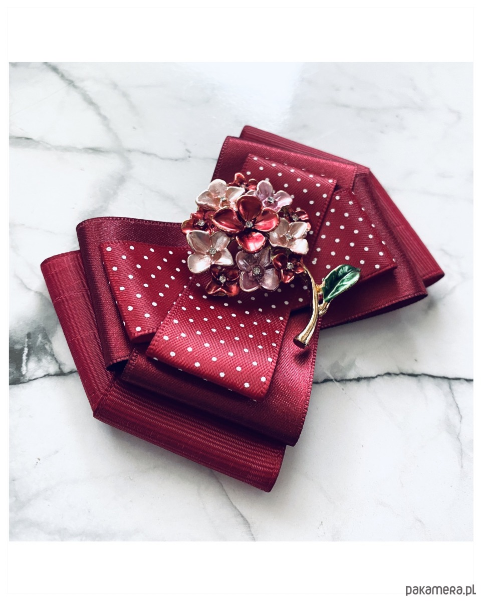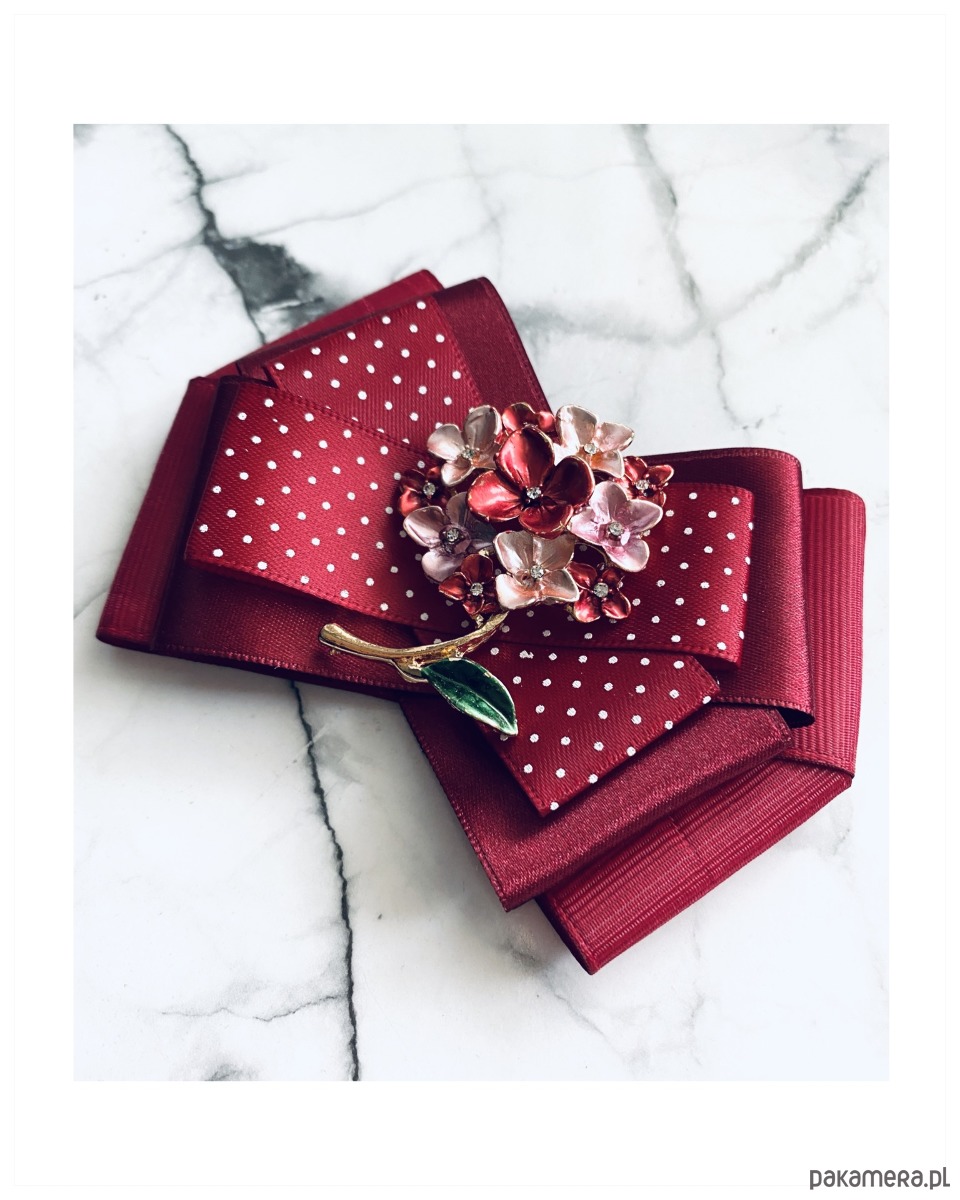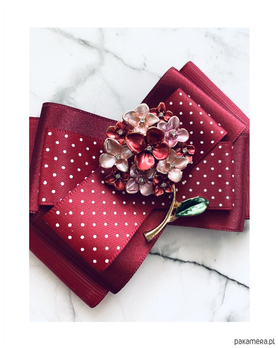 Broszka wykonana z wysokiej jakości taśm i dodatków.