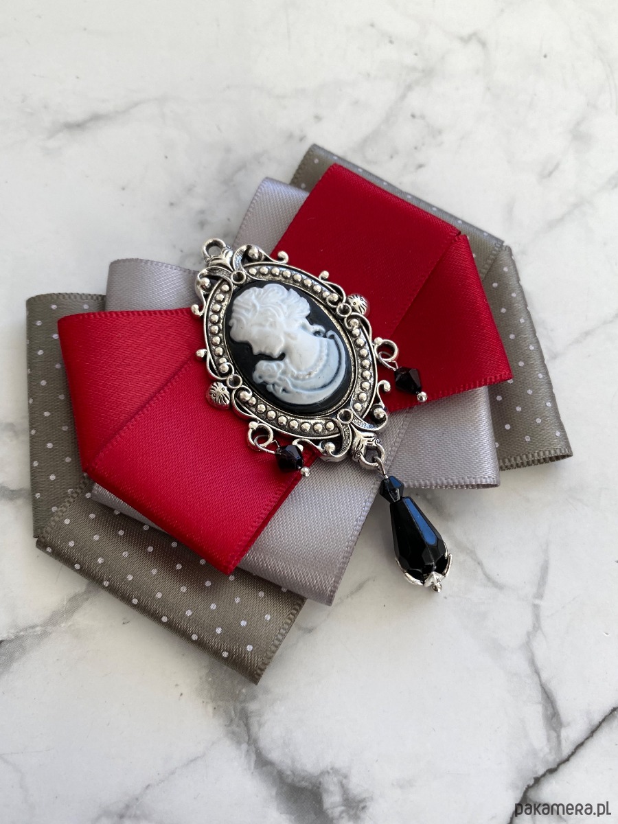 Brosza Kamea Styl Glamour Dama Kameliowa z paciorkami