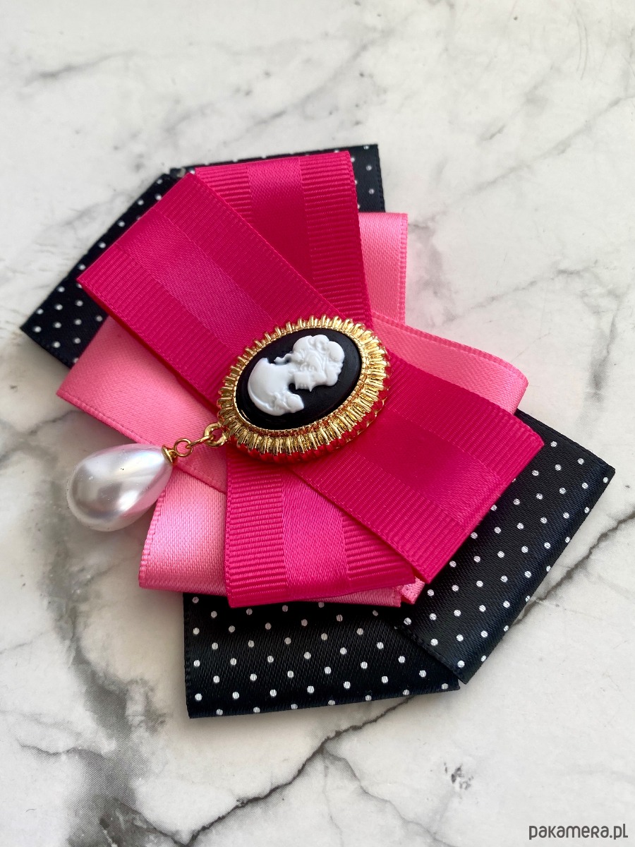 Brosza Kamea Styl Glamour Dama Kameliowa z perłą