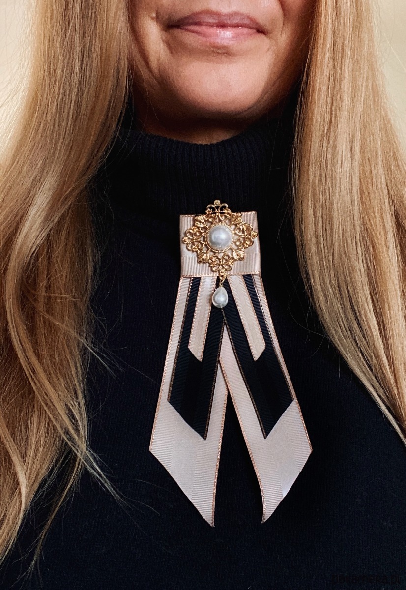 Brosza w najmodniejszym kolorze tego sezonu połączenie czerni z beżem i złotem.