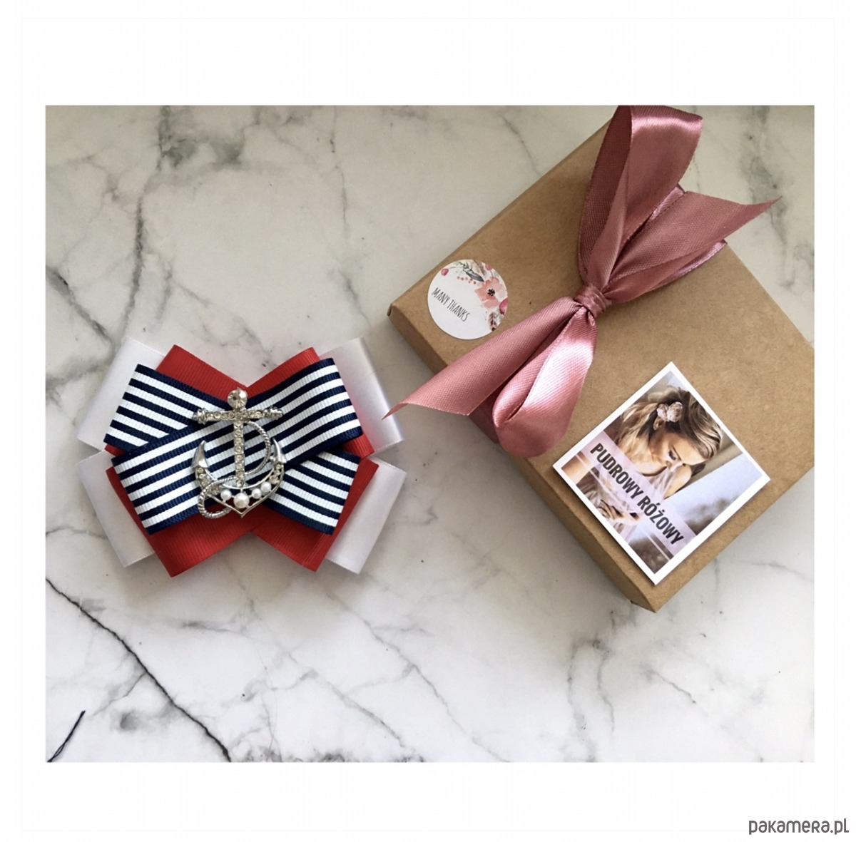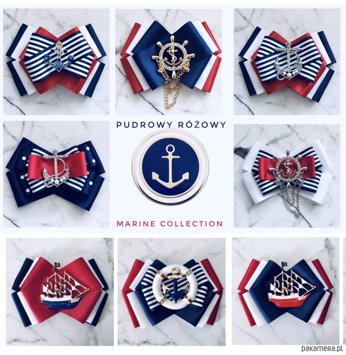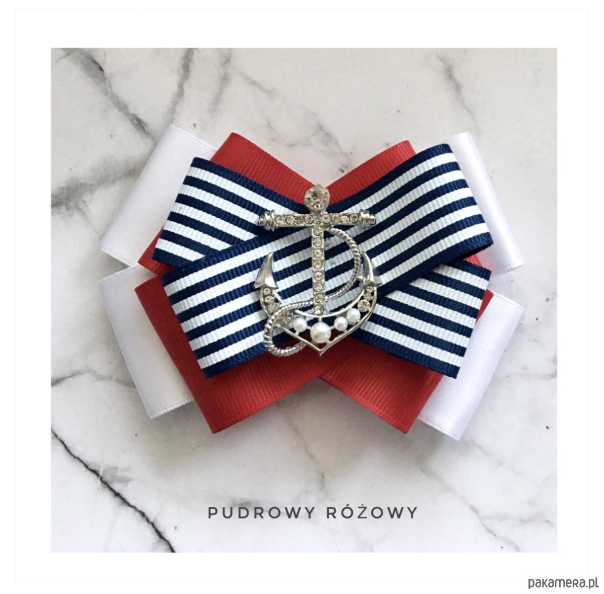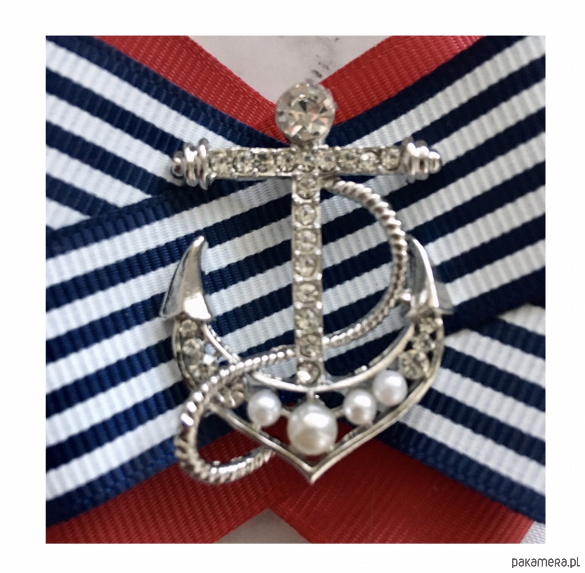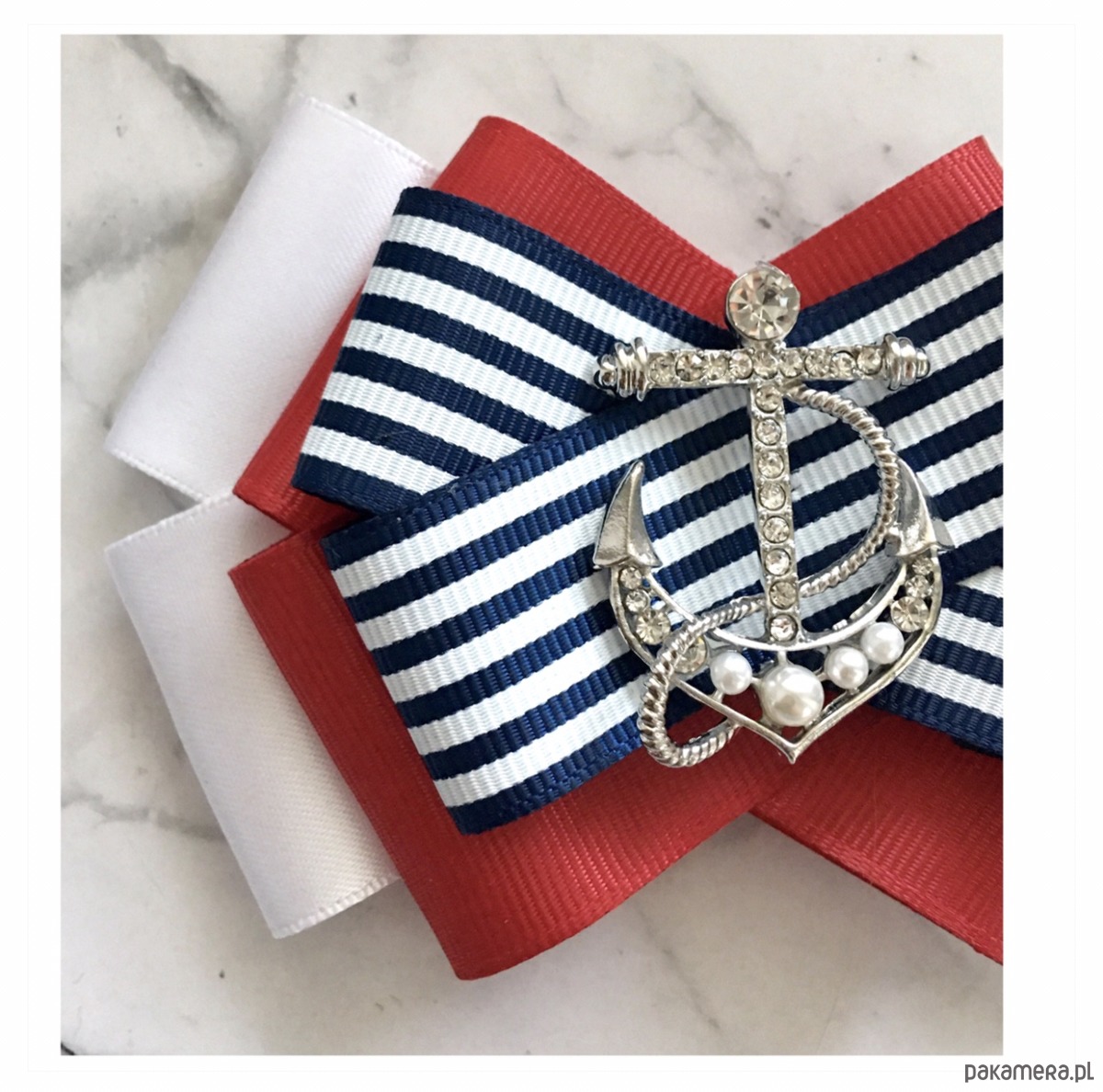 Broszka wykonana z wysokiej jakości taśm i dodatków. Broszka w klimacie marynarskim. W kolorach związanych z morzem, wakacjami i cudownym wakacyjnym klimacie. Granaty, biel i czerwień trio doskonale.