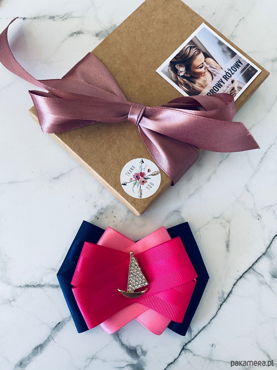 Broszka wykonana z wysokiej jakości taśm i dodatków.