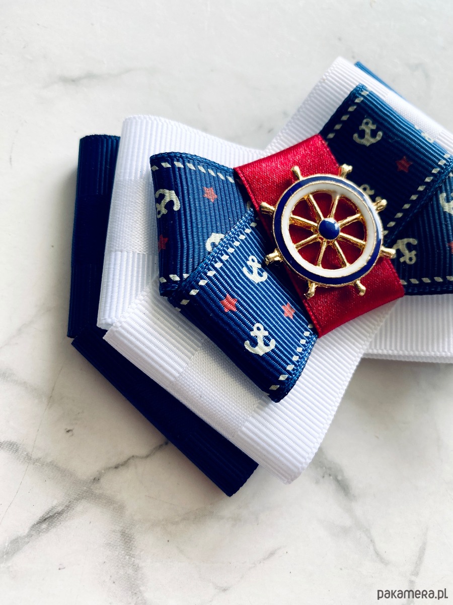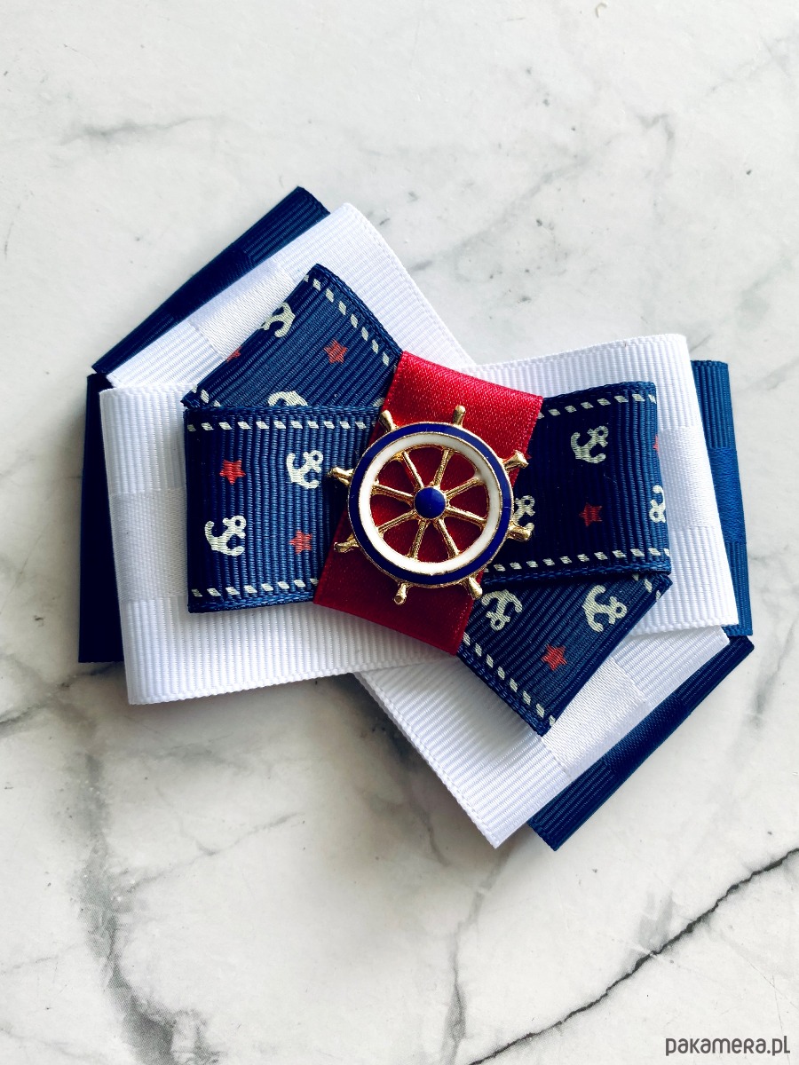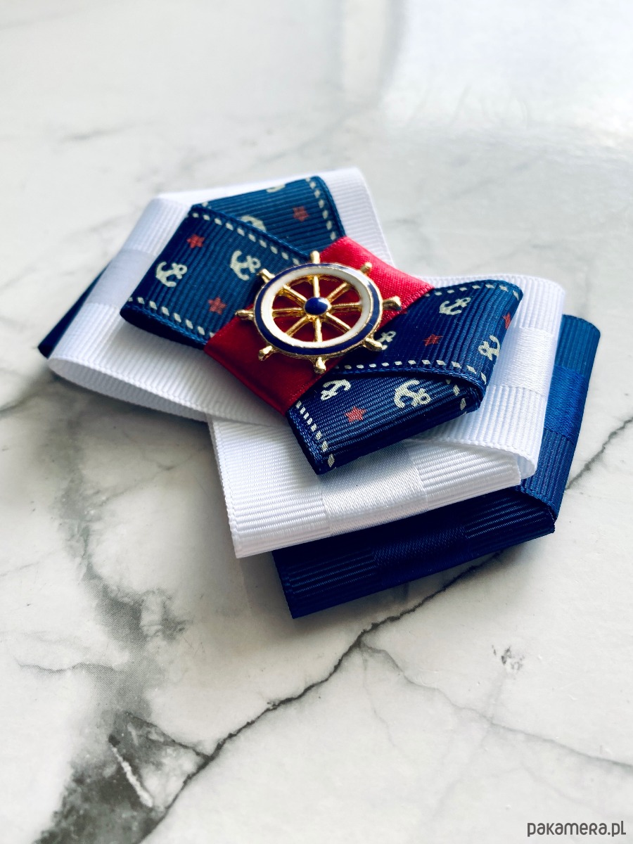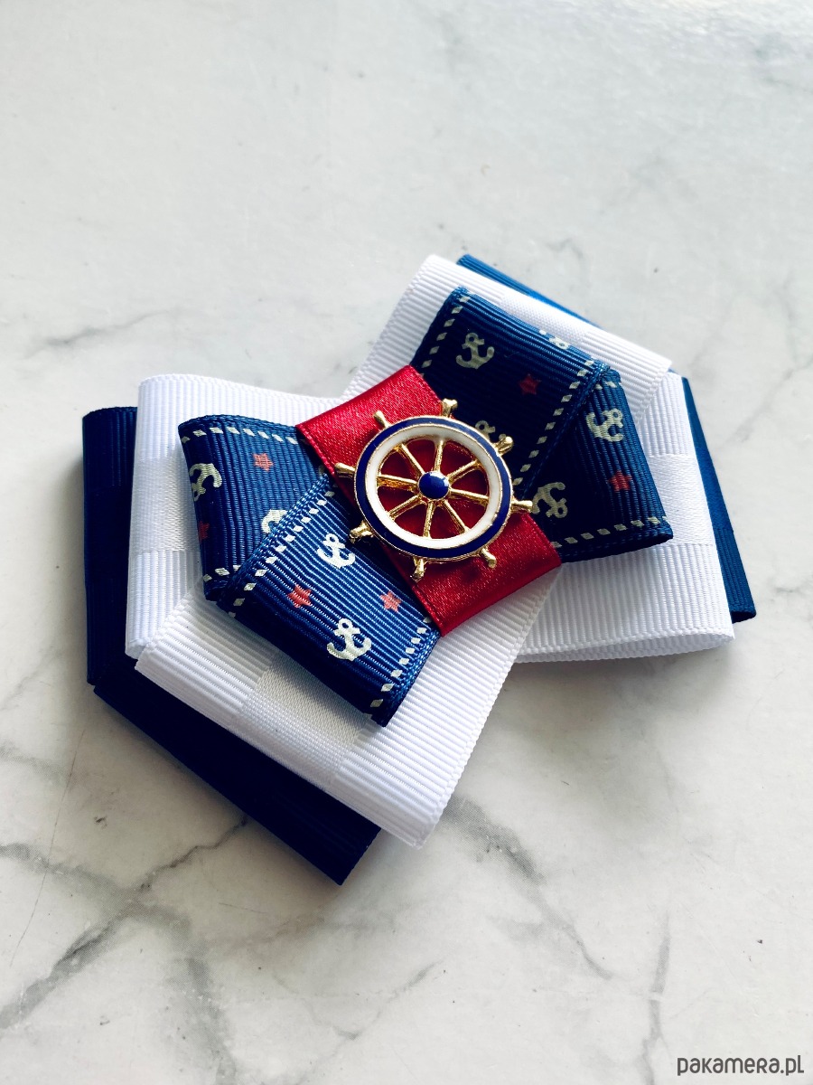 Broszka w klimacie marynarskim. W kolorach związanych z morzem, wakacjami i cudownym wakacyjnym klimacie. Granaty, biel i czerwień trio doskonale.