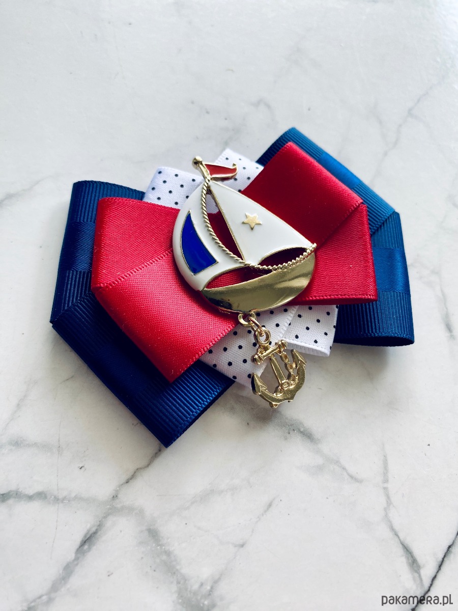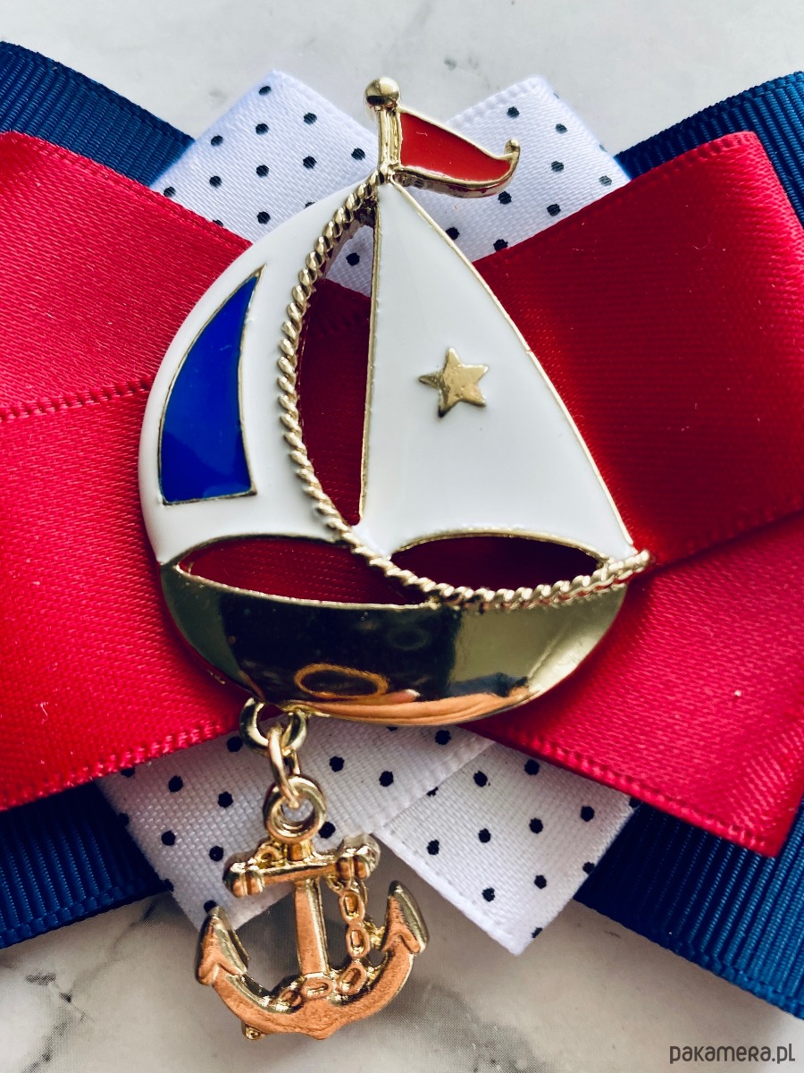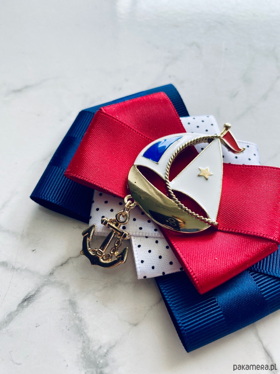Broszka w klimacie marynarskim. W kolorach związanych z morzem, wakacjami i cudownym wakacyjnym klimacie. Granaty, biel i czerwień trio doskonale.
