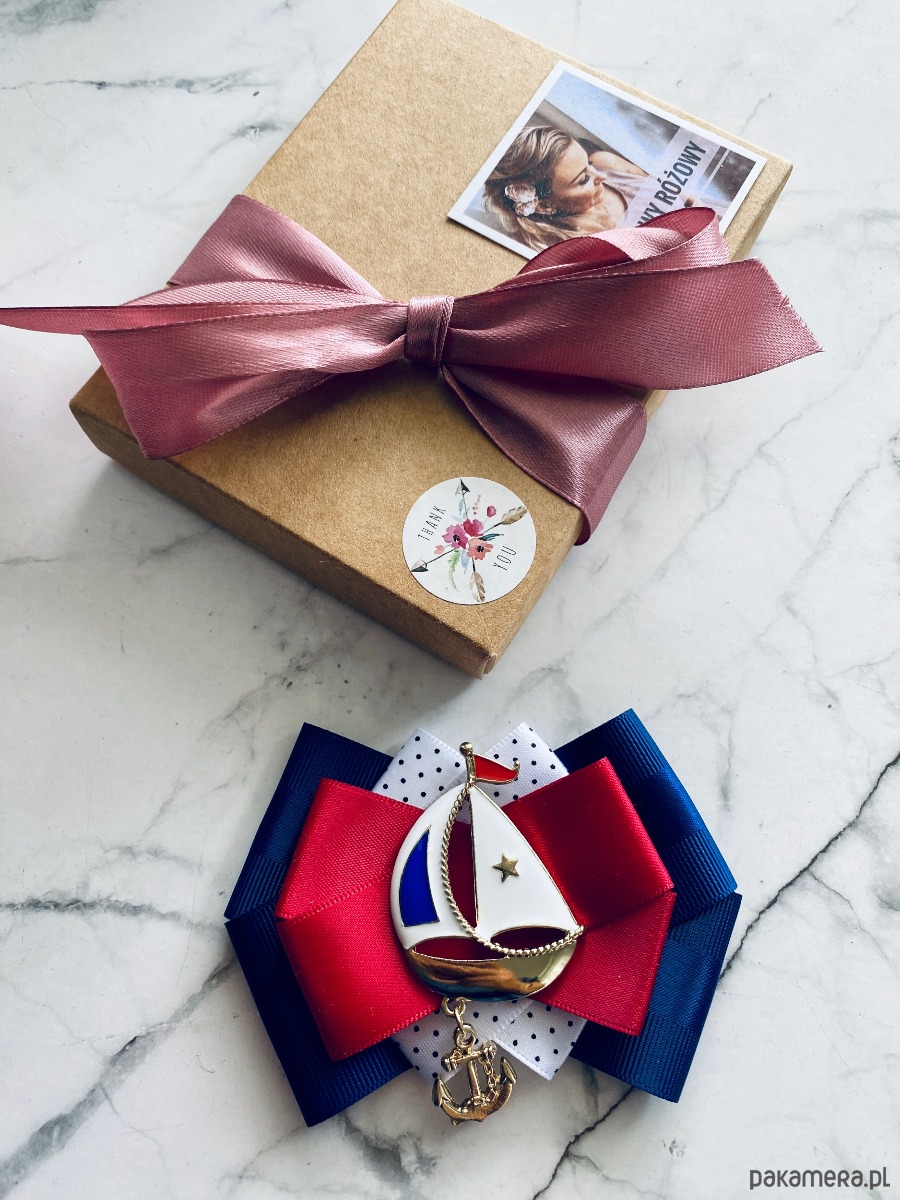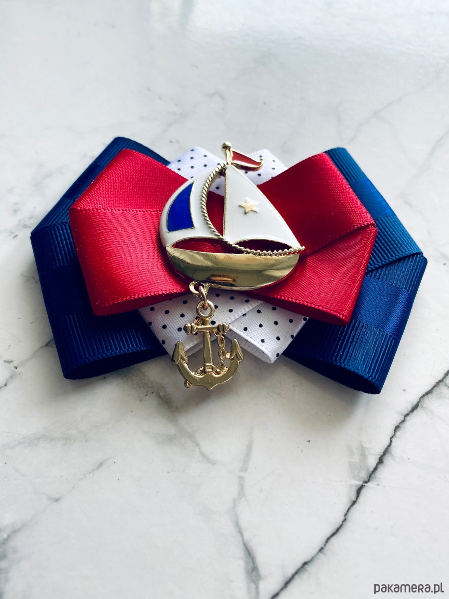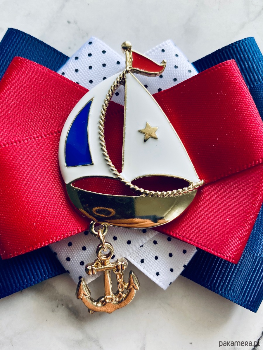 Broszka w klimacie marynarskim. W kolorach związanych z morzem, wakacjami i cudownym wakacyjnym klimacie. Granaty, biel i czerwień trio doskonale.