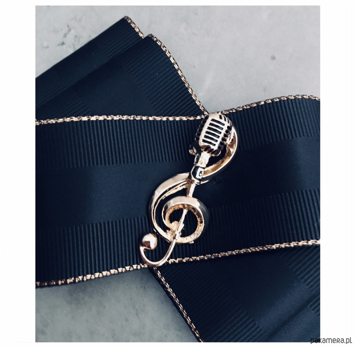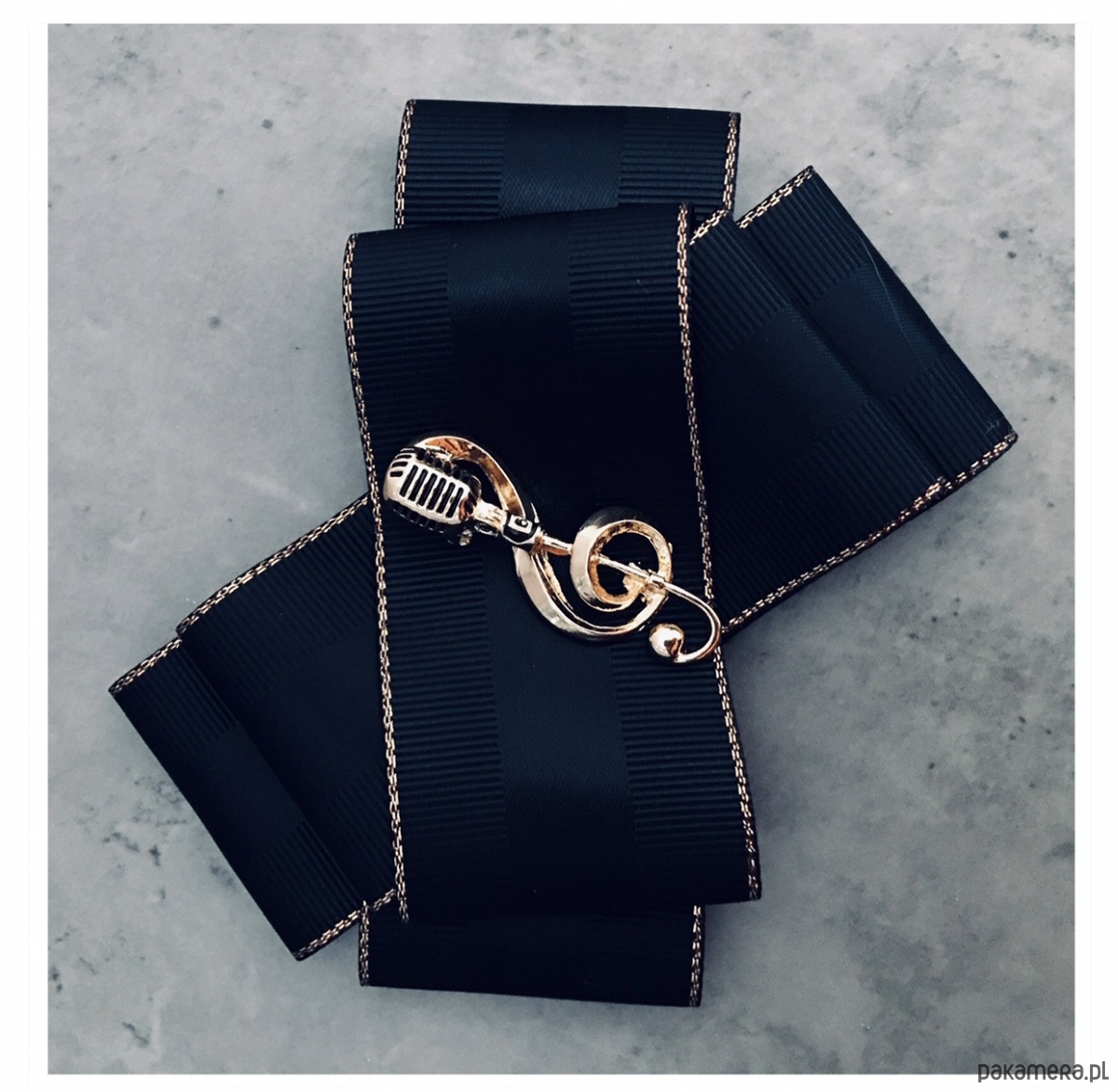 Broszka wykonana z wysokiej jakości taśm i dodatków.