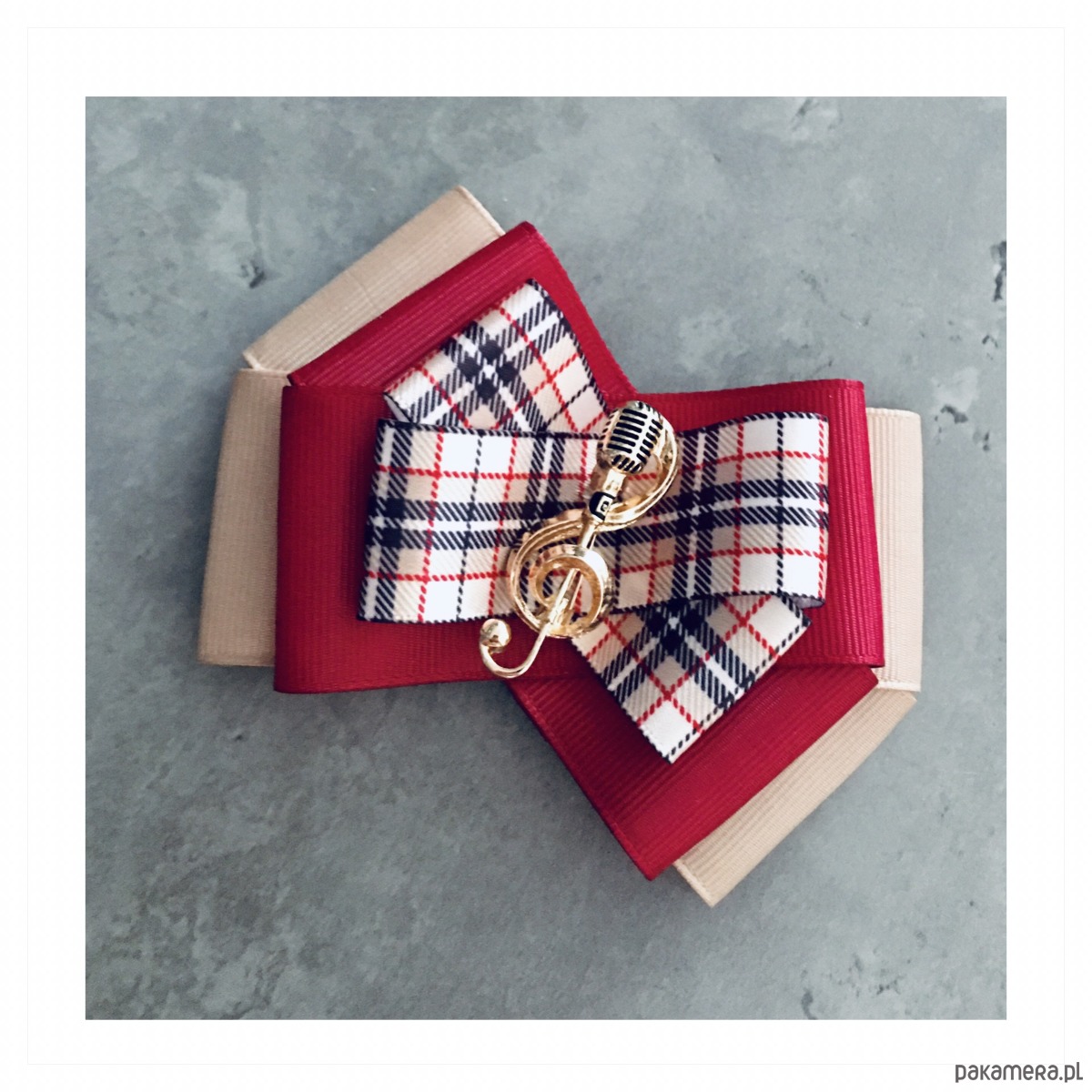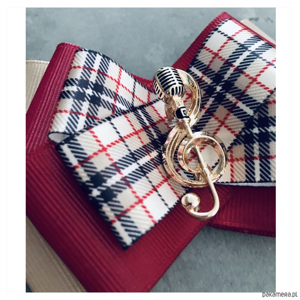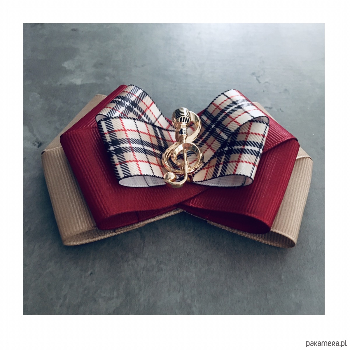 Broszka wykonana z wysokiej jakości taśm i dodatków.