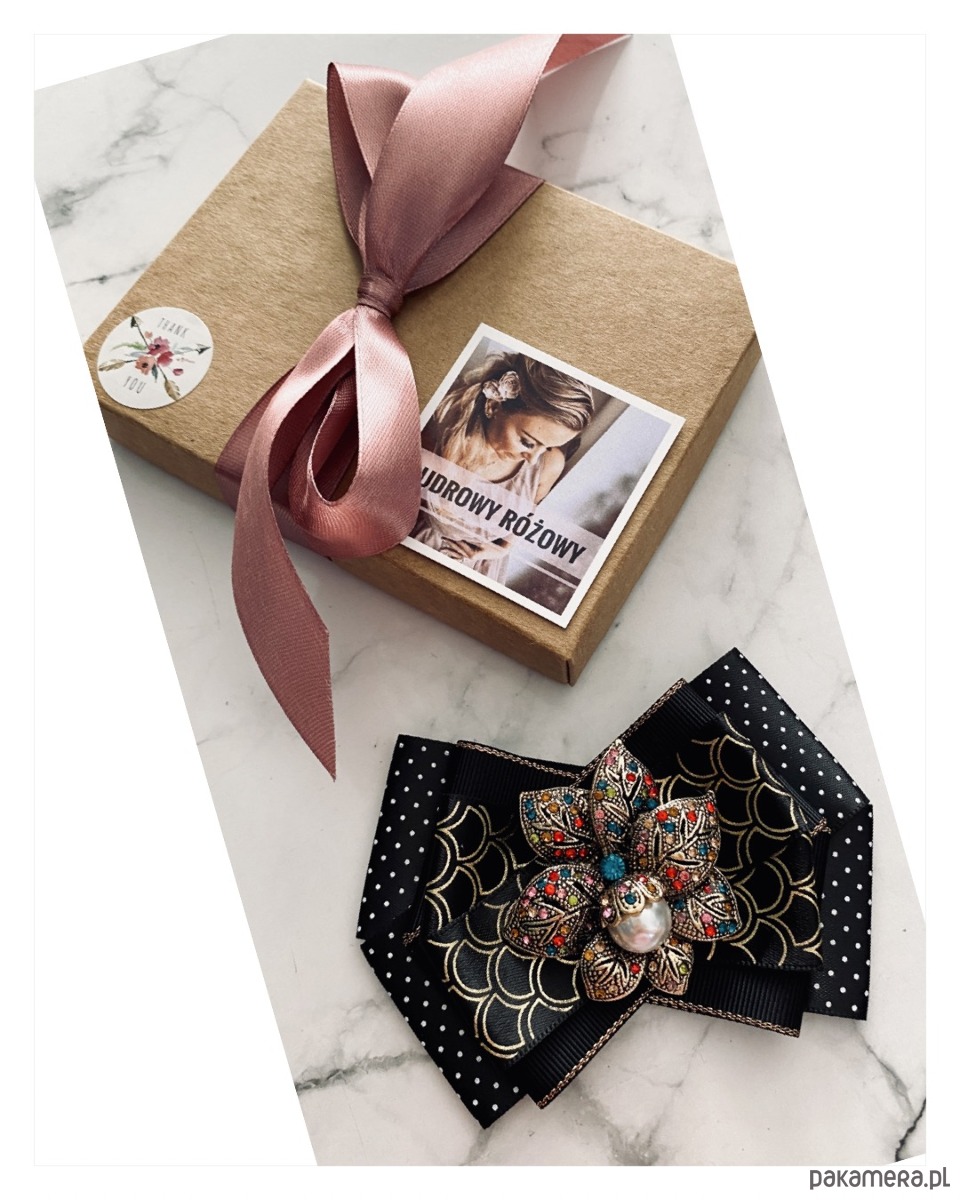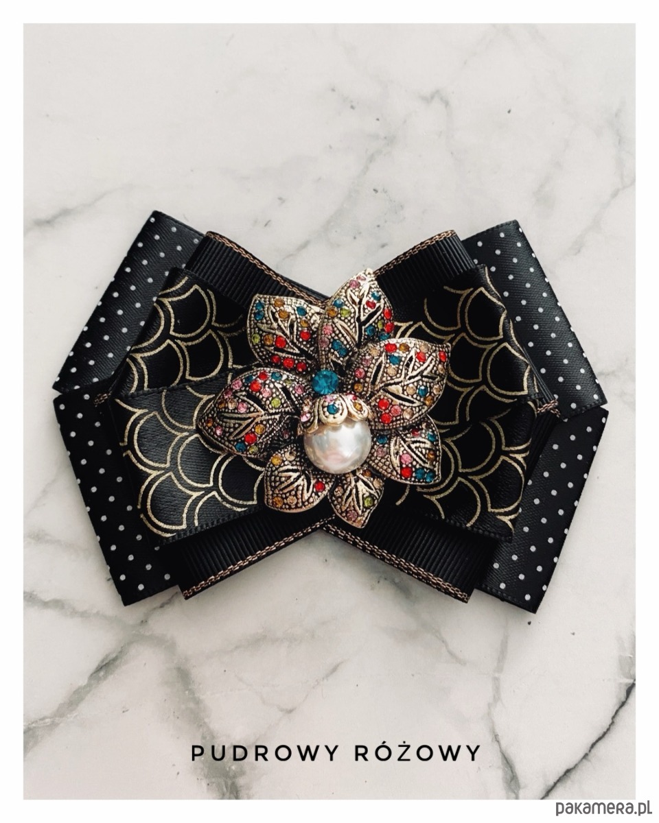 Broszka wykonana z wysokiej jakości taśm i dodatków.