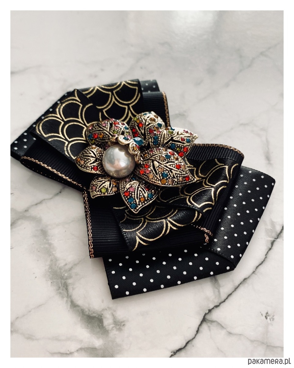 Brosza w kolorze czerni i złota.