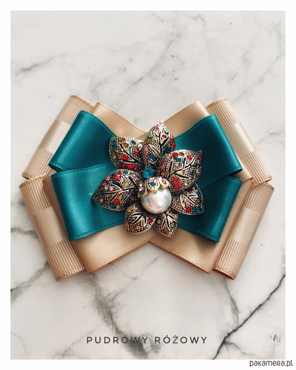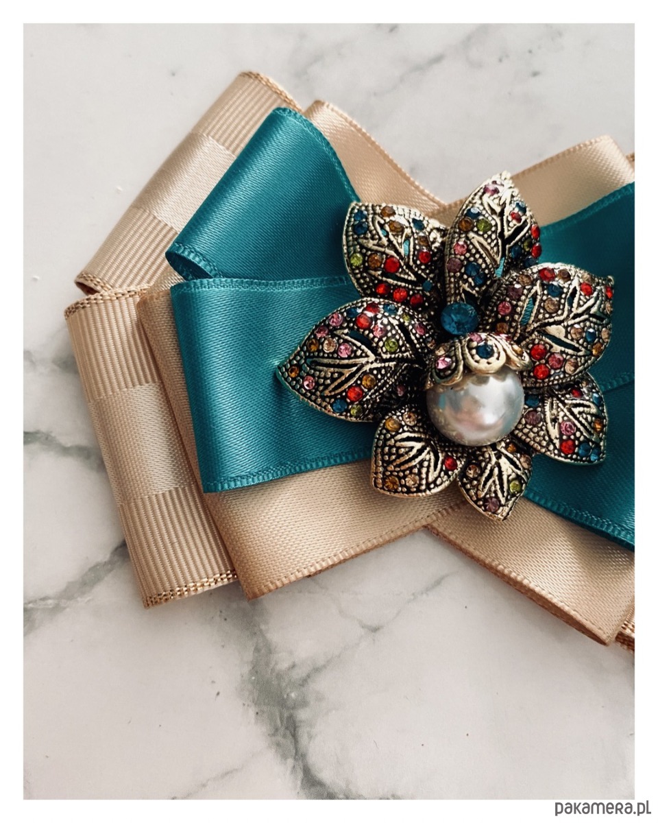 Brosza w kolorze szlachetnego beżu i turkusu.