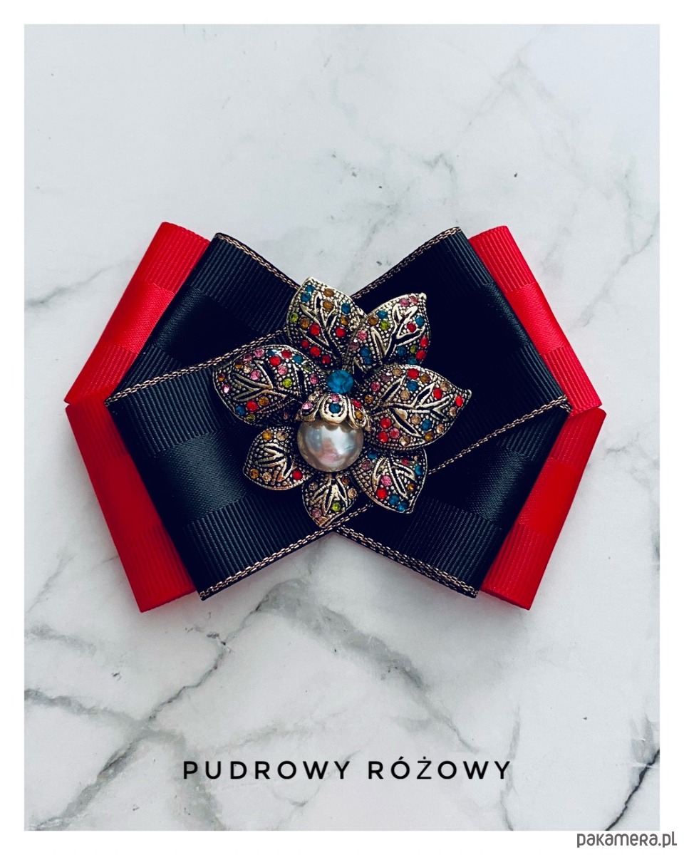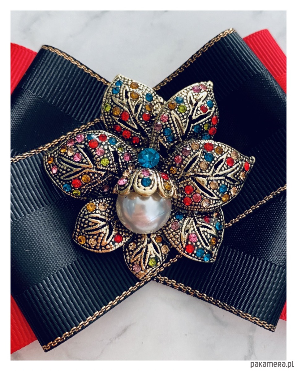 Broszka wykonana z wysokiej jakości taśm i dodatków.