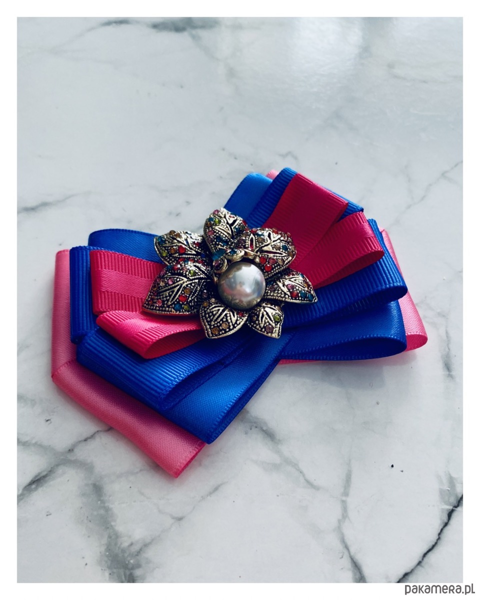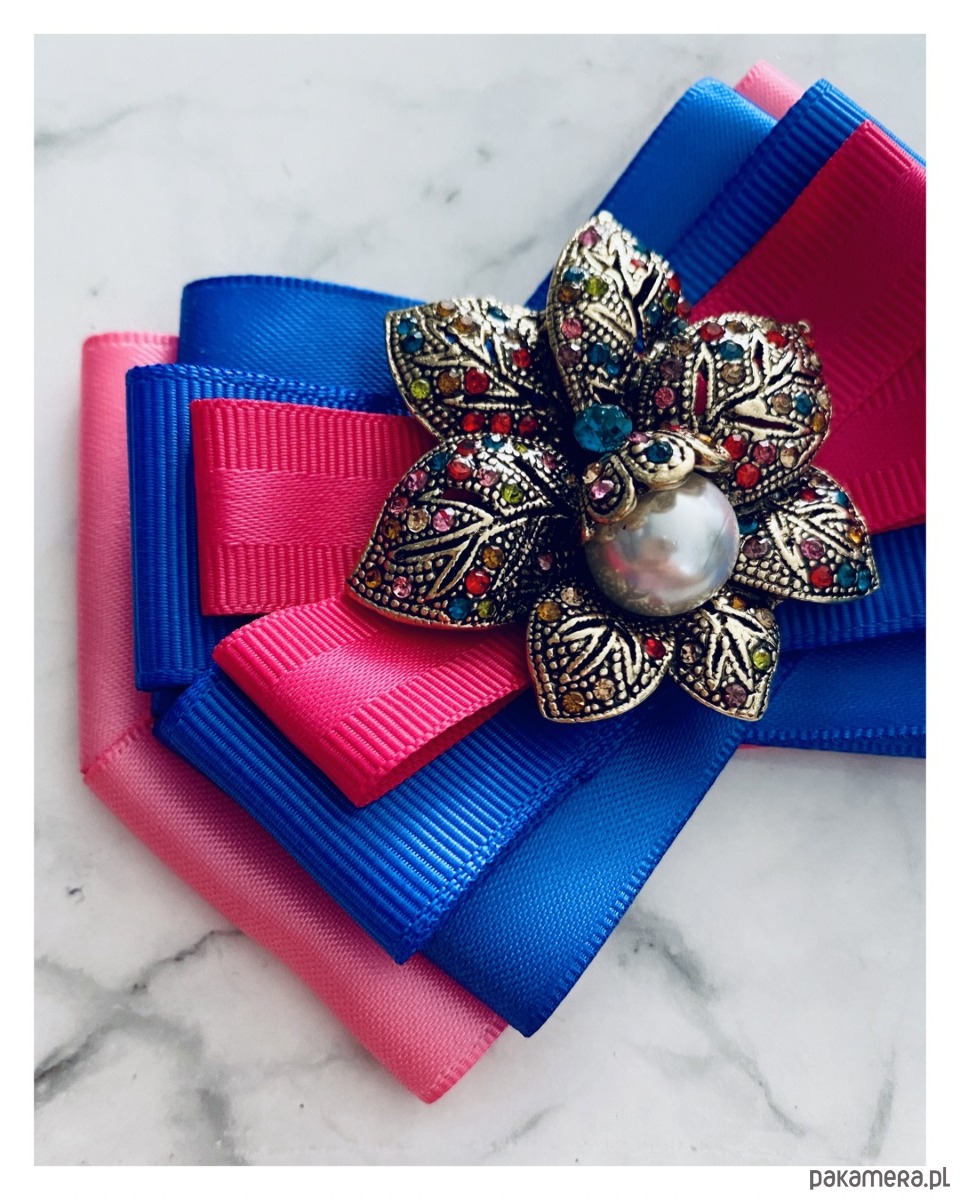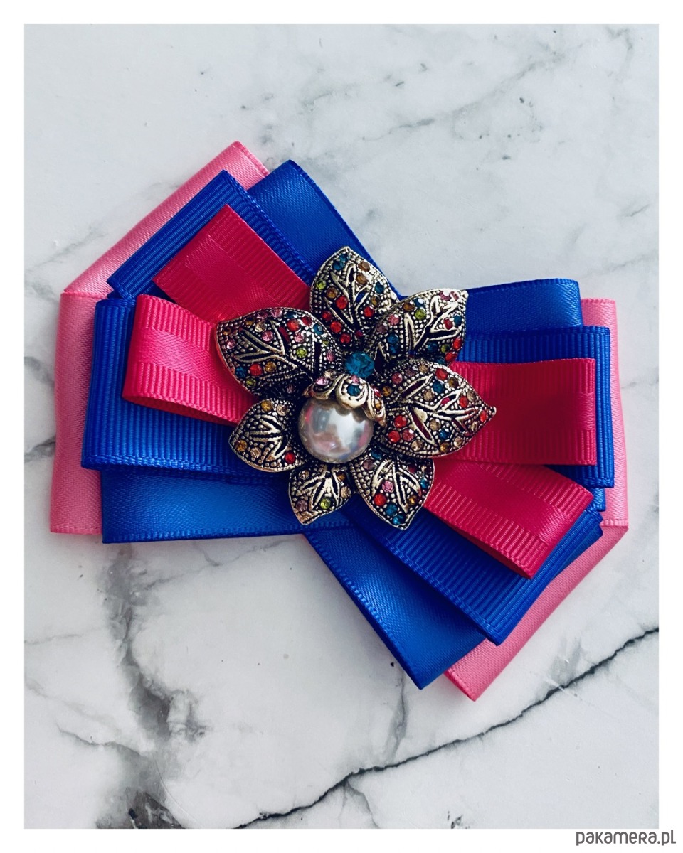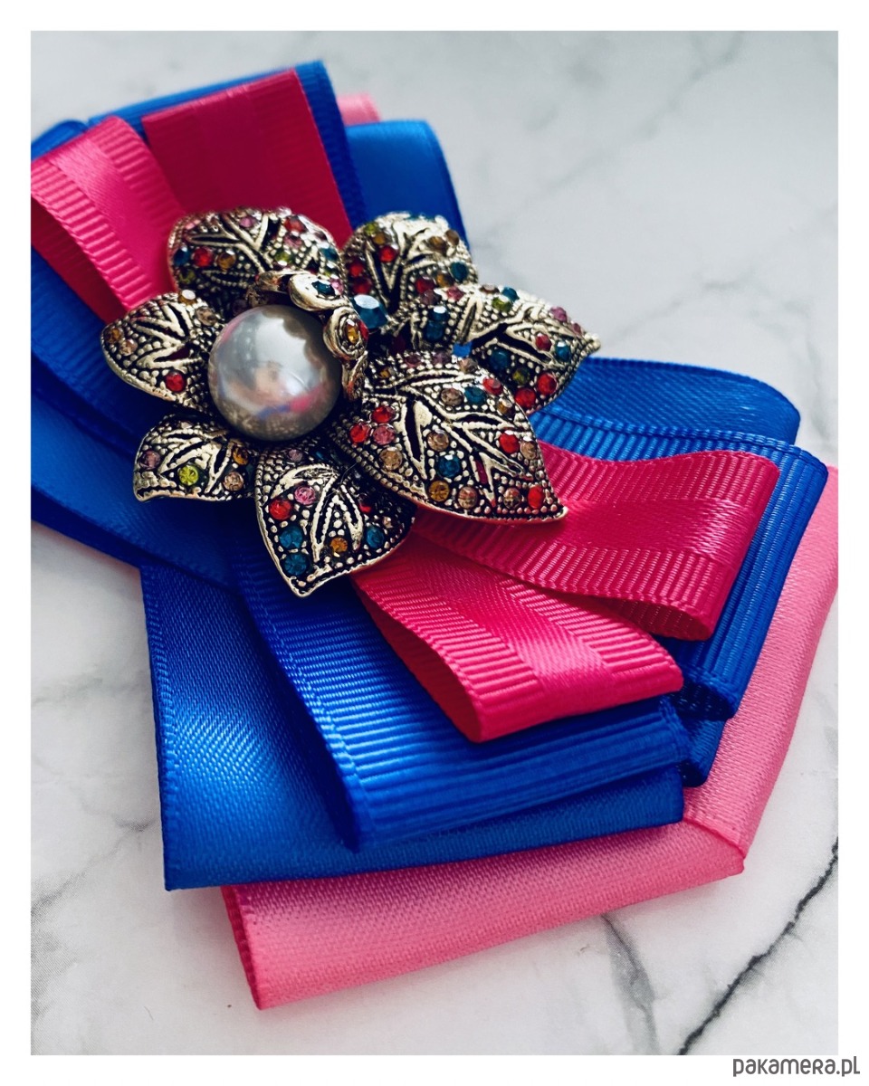 Brosza w kolorze różu, fuksji i chabrowego.