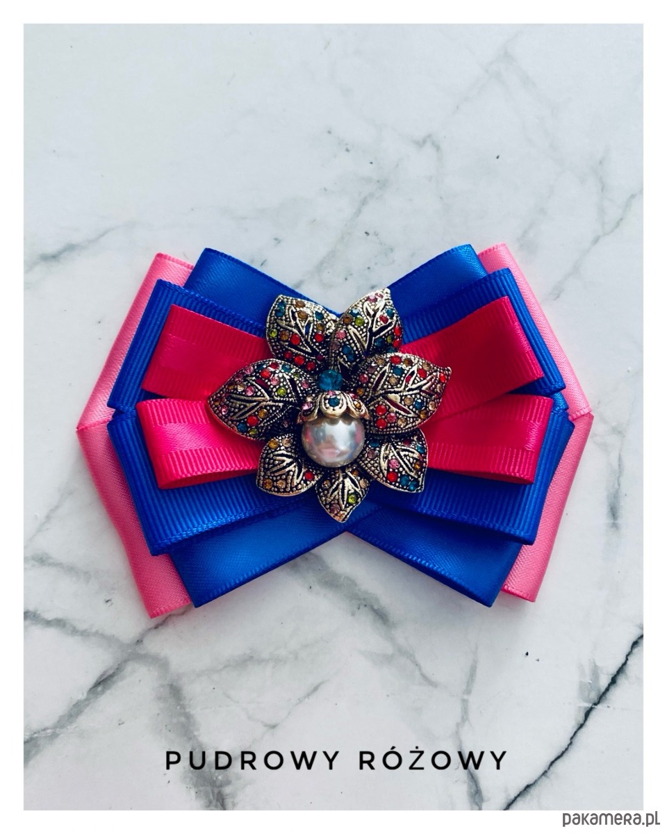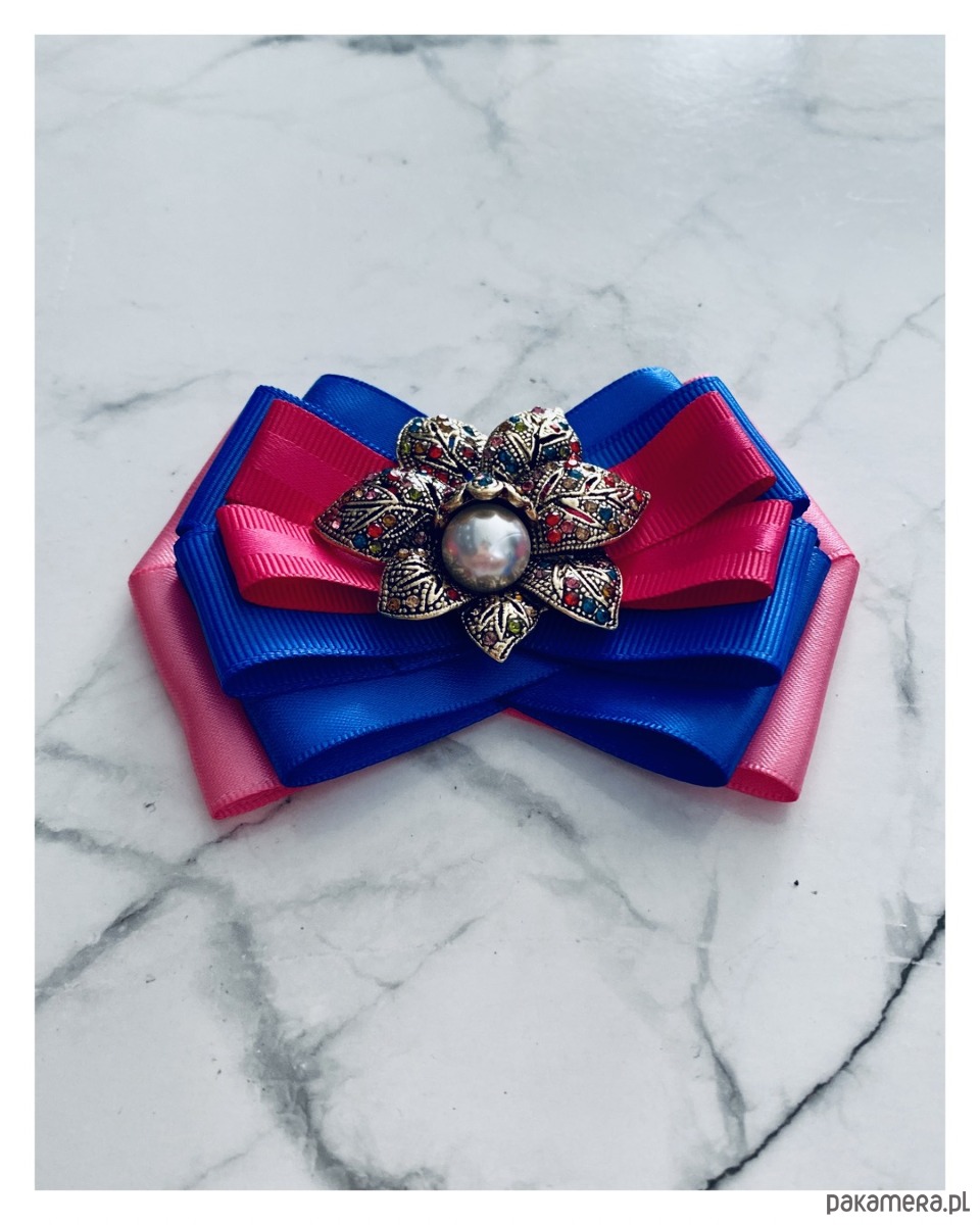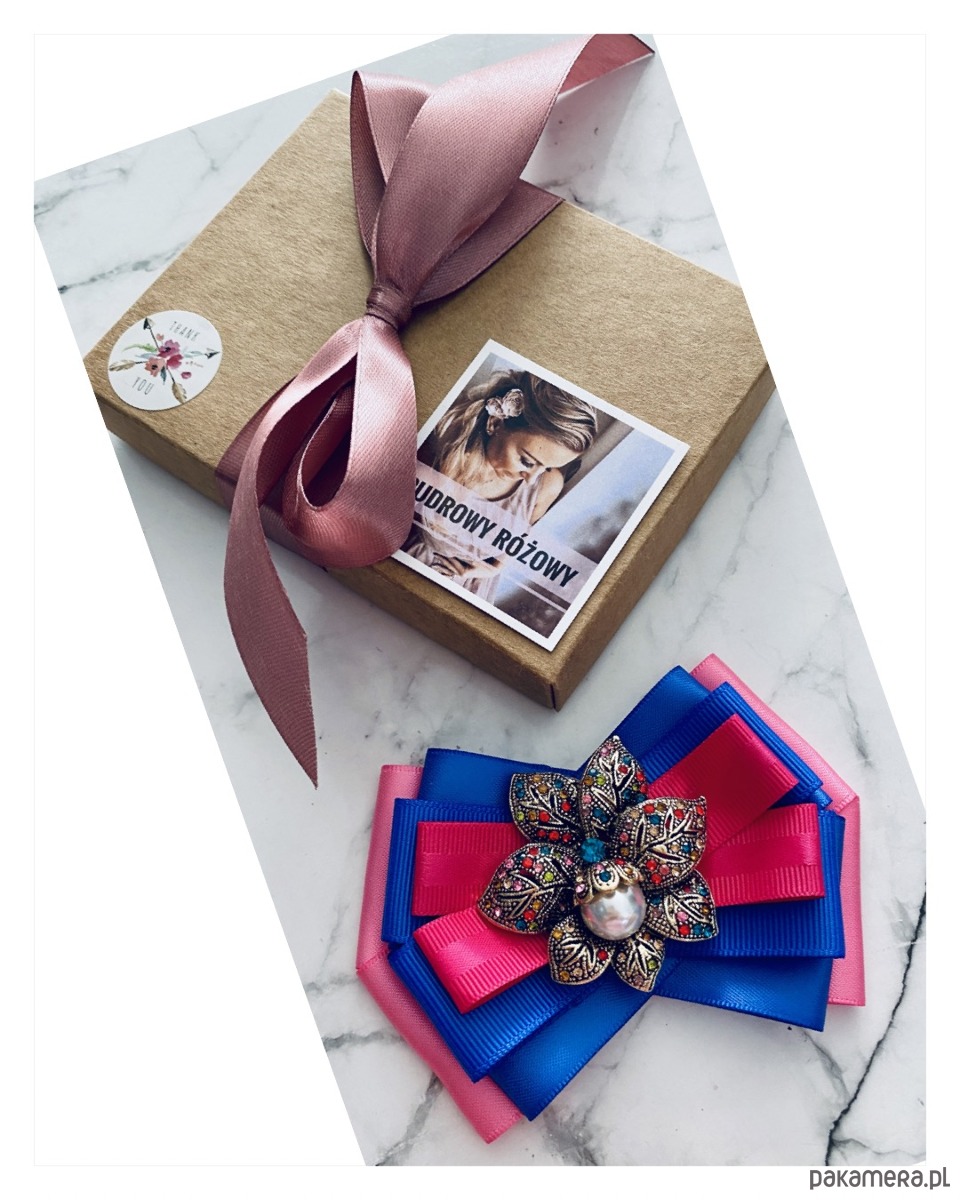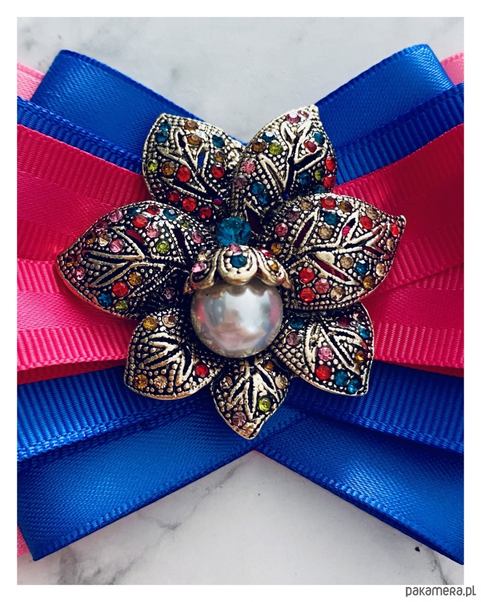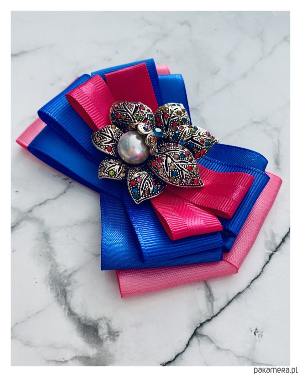 Brosza w kolorze różu, fuksji i chabrowego.