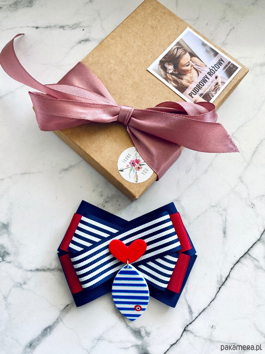 Broszka wykonana z wysokiej jakości taśm i dodatków.