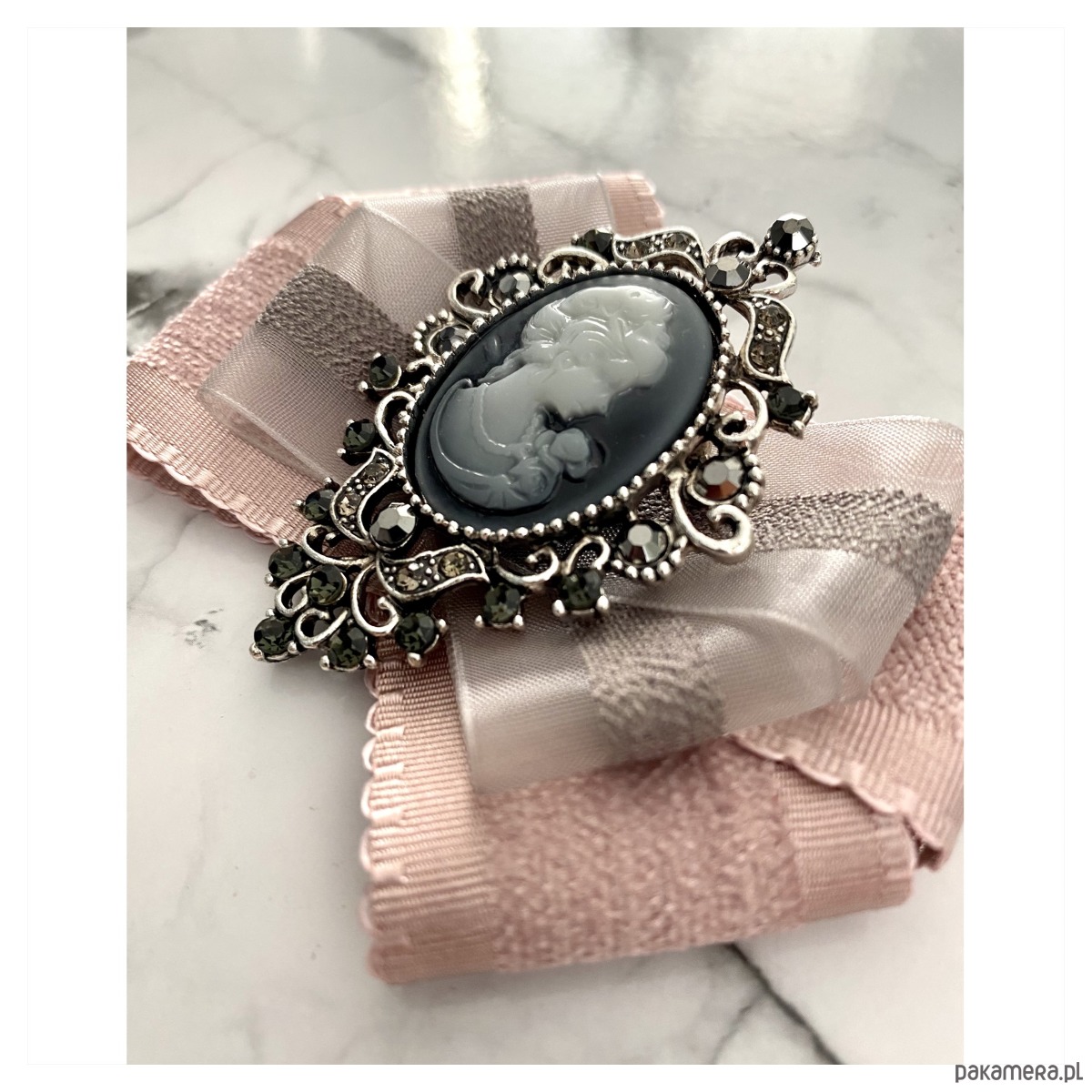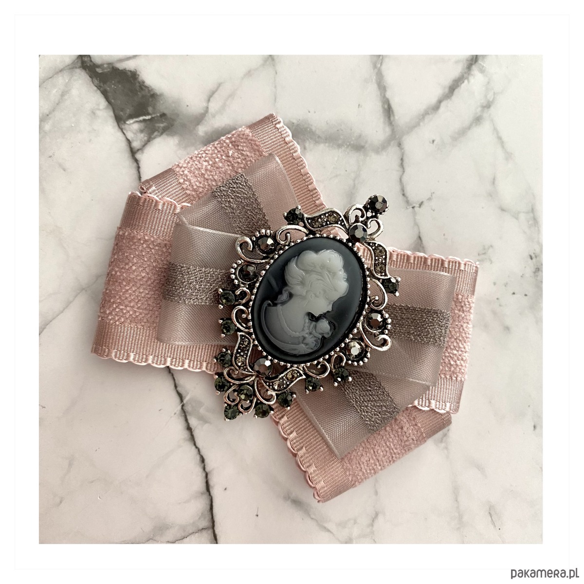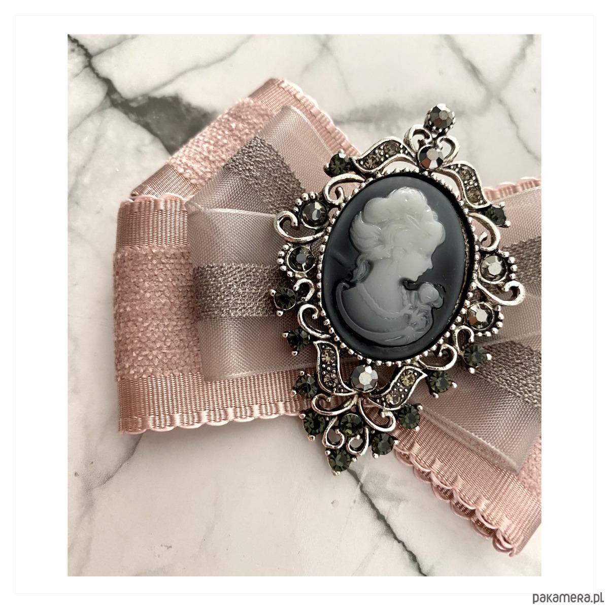 Broszka wykonana z wysokiej jakości taśm i dodatków.