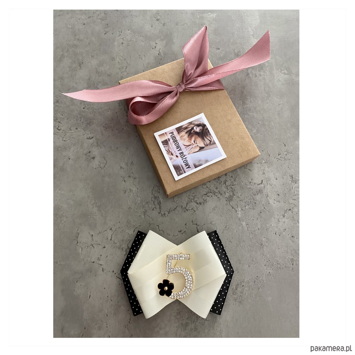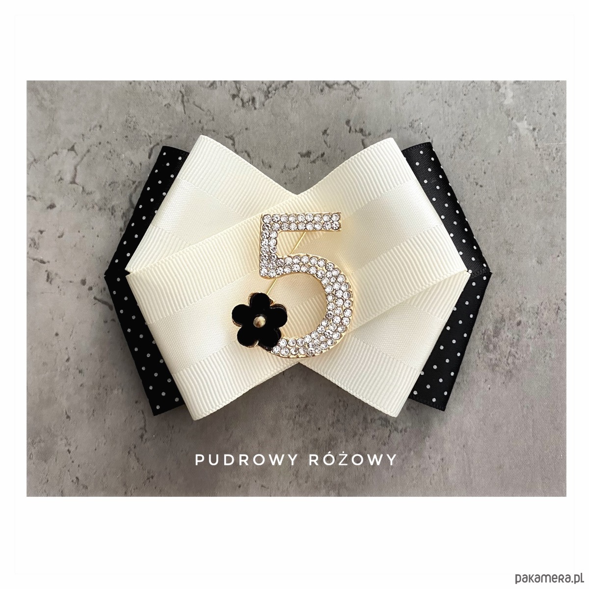 Piękna dekoracyjna cyferka 5 z delikatnym kwiatkiem na środku.