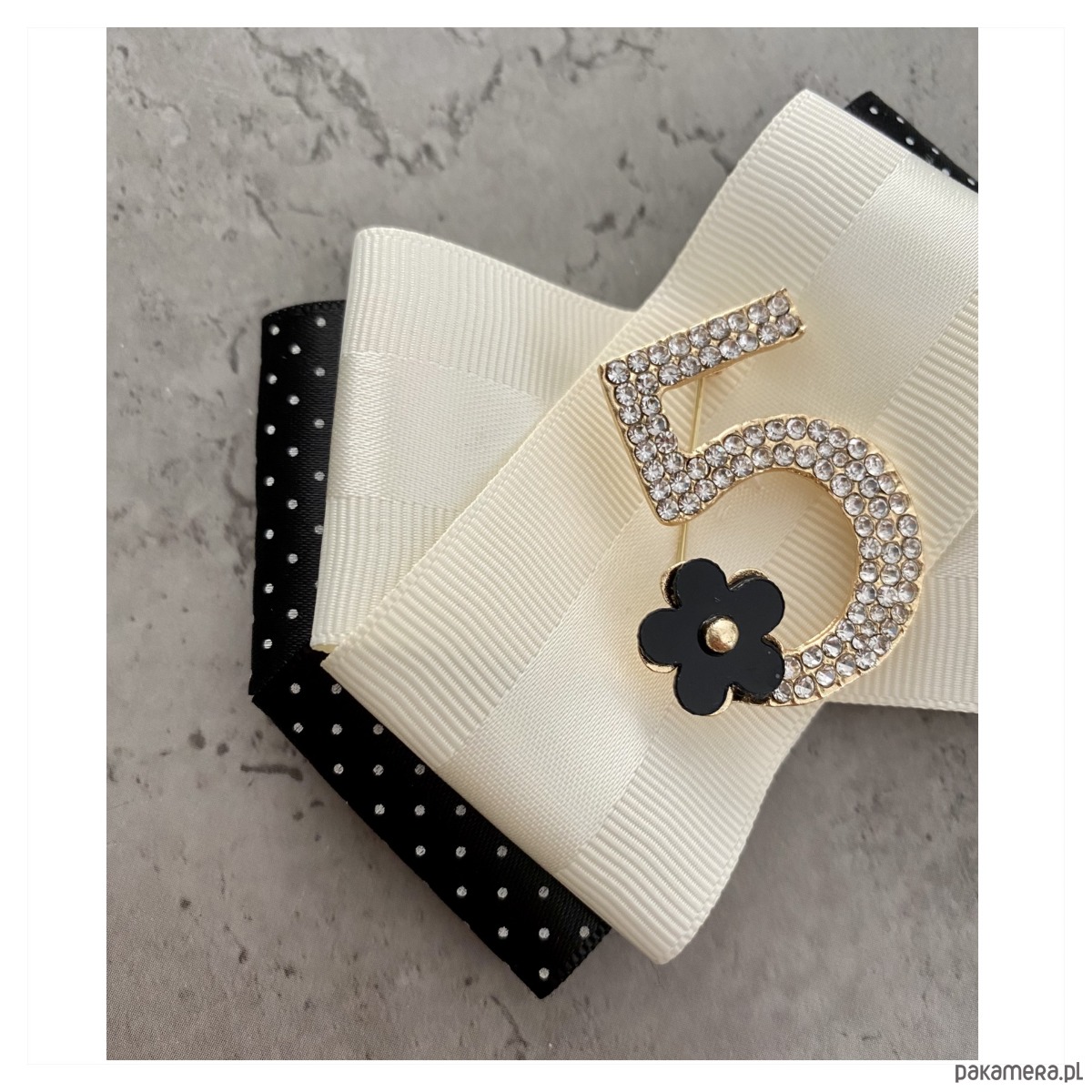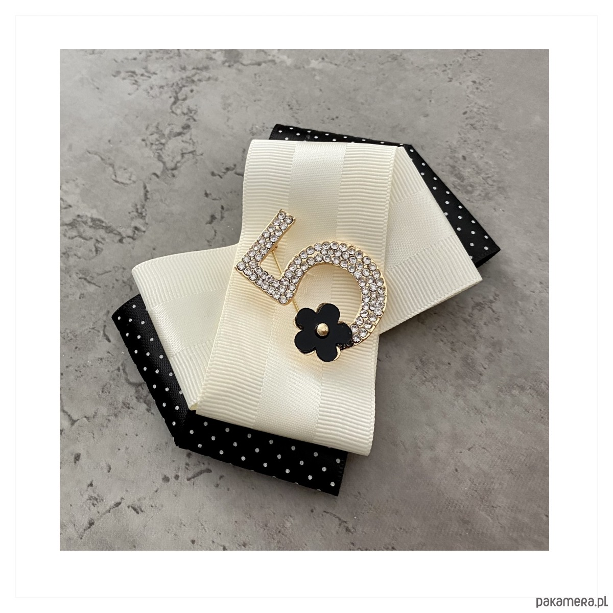 Broszka wykonana z wysokiej jakości taśm i dodatków.