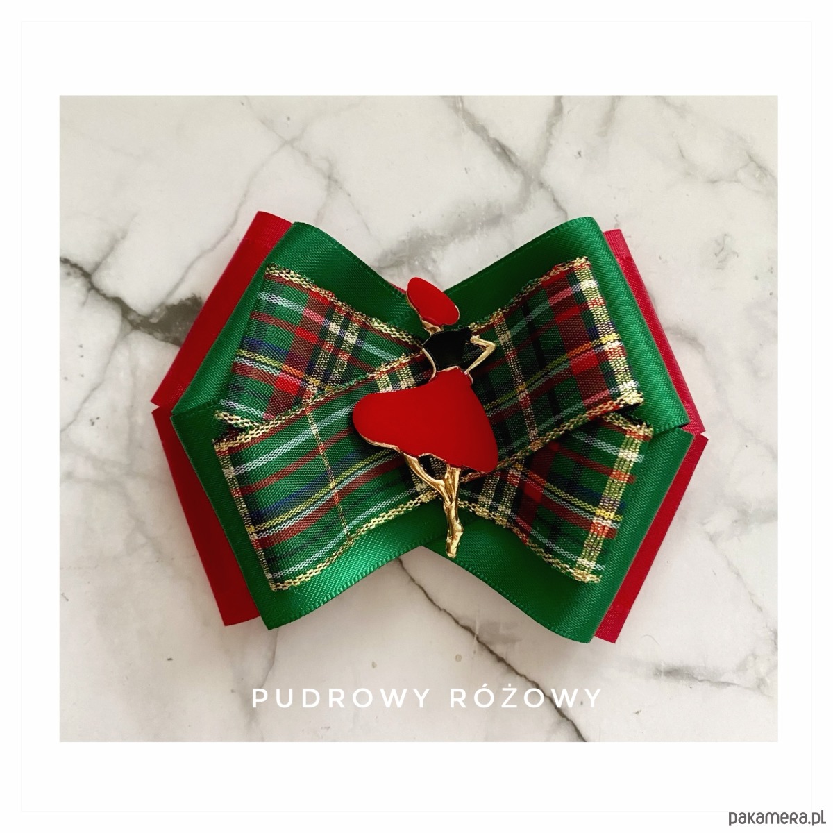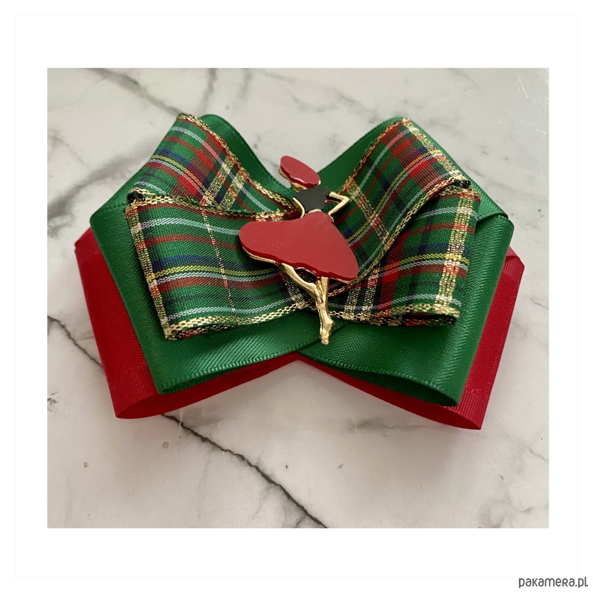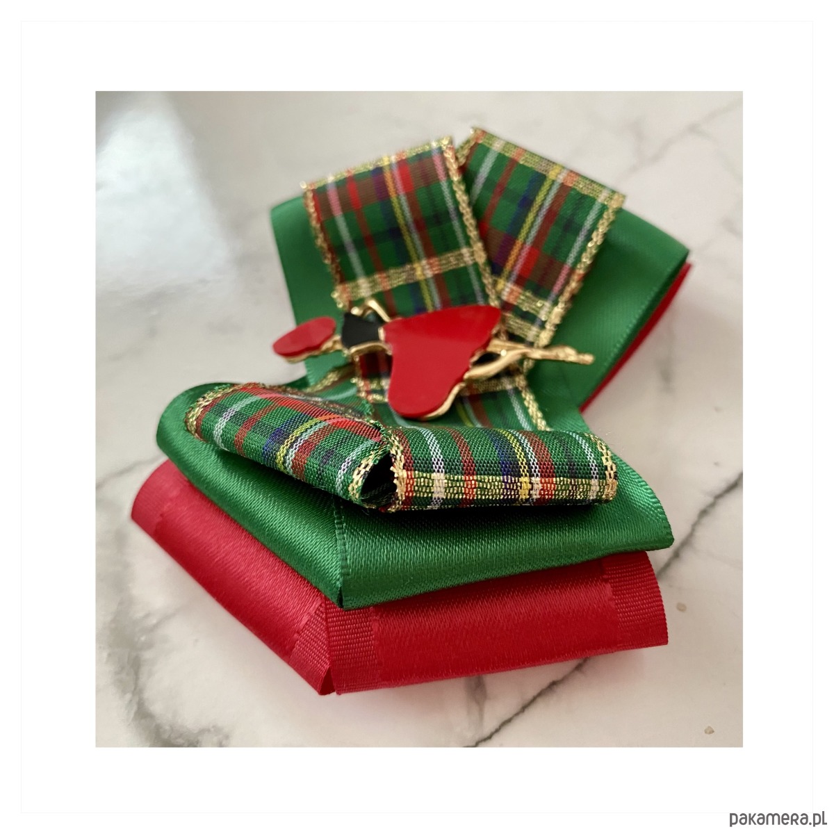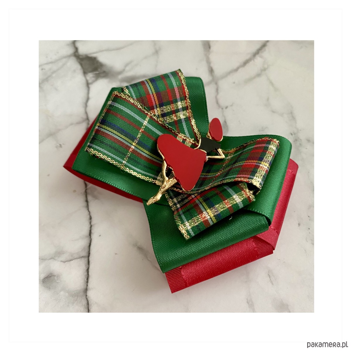 Broszka wykonana z wysokiej jakości taśm i dodatków.