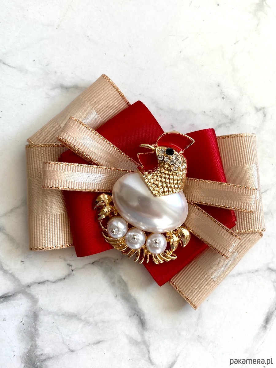Broszka wykonana z wysokiej jakości taśm i dodatków.