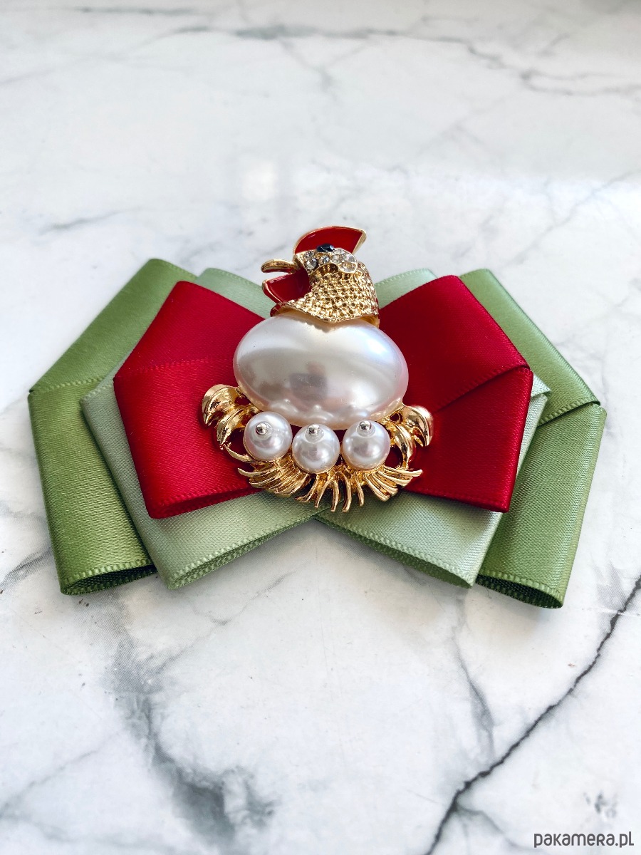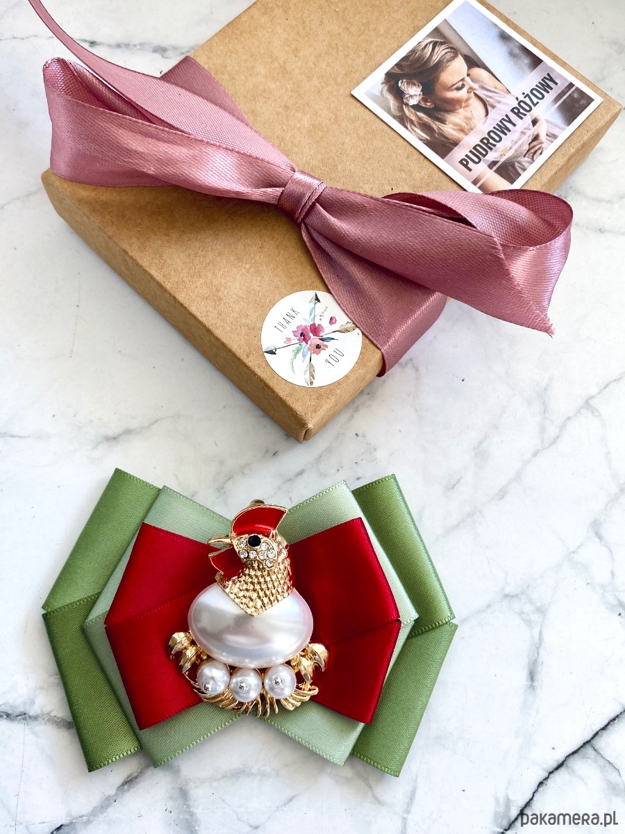 Broszka wykonana z wysokiej jakości taśm i dodatków.