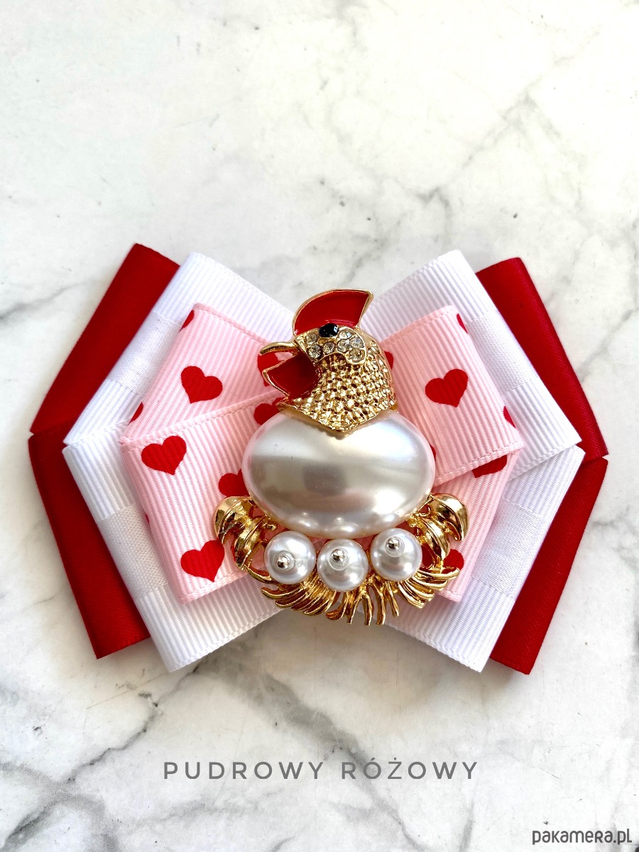 Broszka wykonana z wysokiej jakości taśm i dodatków.