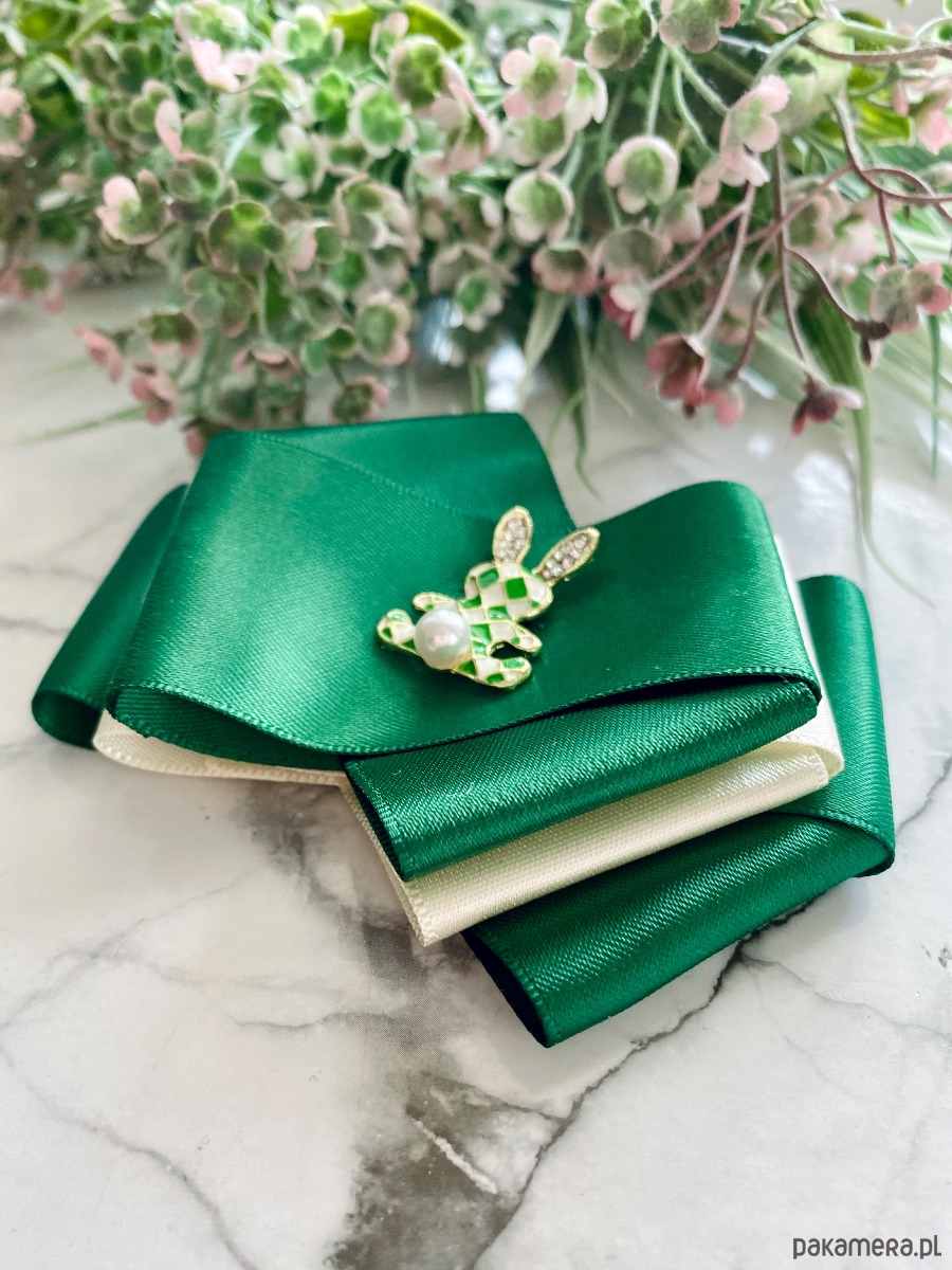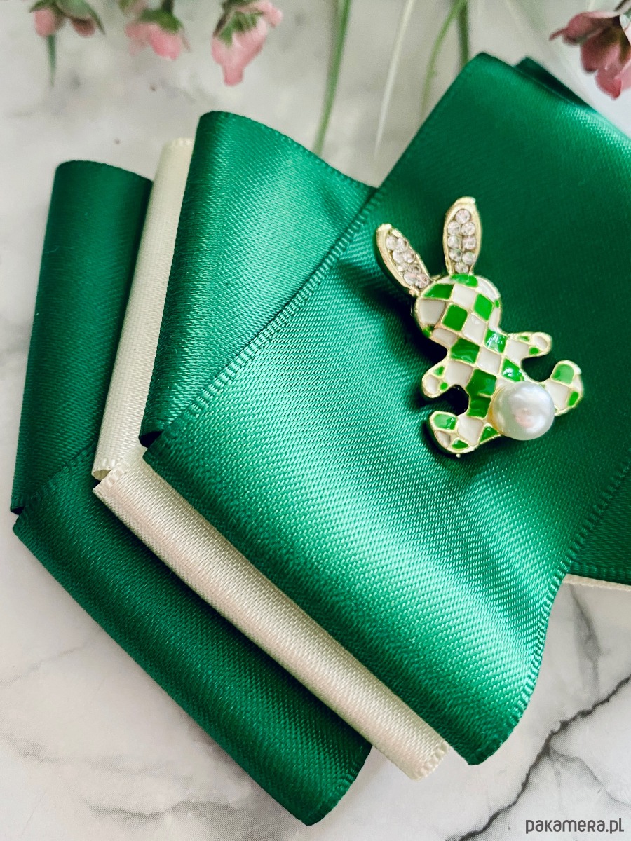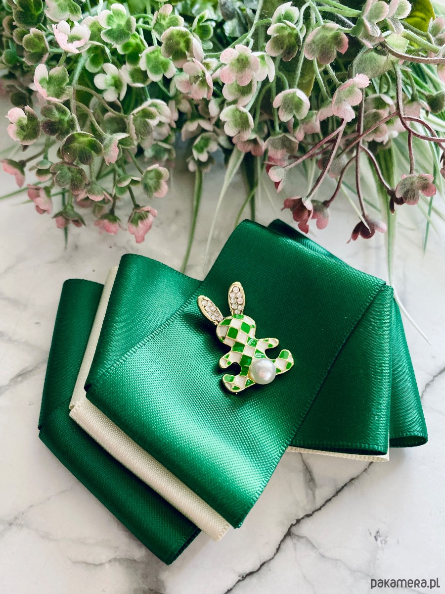 Na środku cudowna ozdoba biżuteryjna malowany w romby zajączek z perłą.